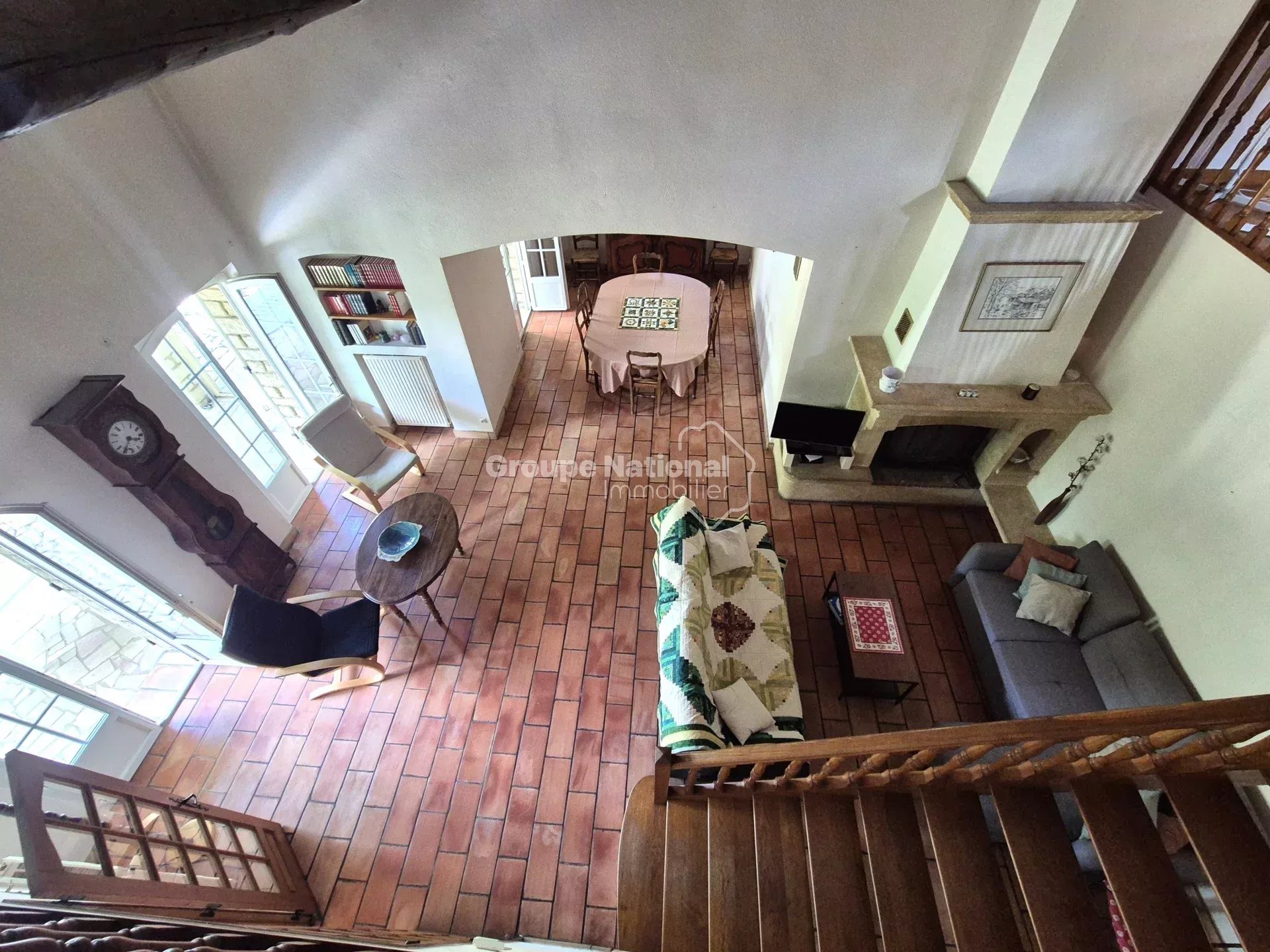 L’intérieur propose de beaux espaces de vie avec un vaste séjour baigné de lumière, sublimé par une belle hauteur sous plafond et un plafond à la française. Une élégante mezzanine surplombe le séjour, apportant à la pièce un charme supplémentaire.