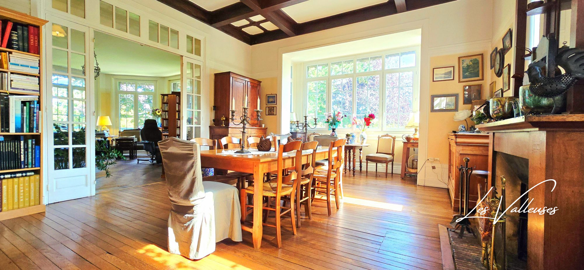 Les parquets chevron, moulures et belles hauteurs sous plafond renforcent l'élégance de cette demeure unique.
