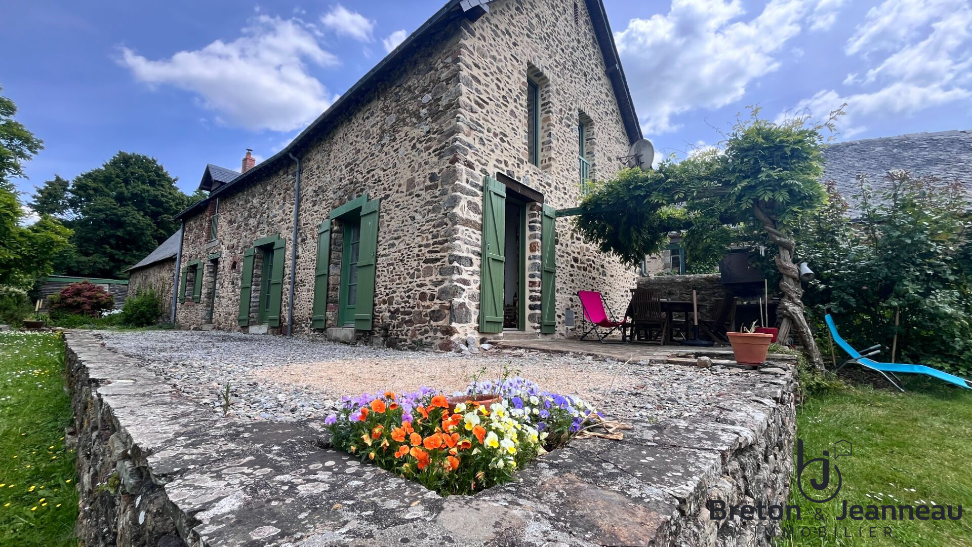Vous aimez la pierre, l'authenticité et le calme venez visiter cette belle longère en pierres de plus de 200 m² offrant au rez-de-chaussée : un espace de vie de plus de 90 m² (cuisine aménagée équipée, séjour, salon avec insert), une salle d'eau avec wc, une arrière-cuisine, un garage avec atelier. À l'étage : mezzanine, 4 chambres, dont une avec salle d'eau privative, une salle d'eau avec wc, un grenier. Chaudière à granulés. Plusieurs dépendances en pierre dont un four à pain, un garage à camping-car. Terrain autour. Fosse à refaire. DPE : C Prix net vendeur : 435000 ?+ 4.09% TTC d'honoraires d'agence à la charge de l'acquéreur. Pour plus d'informations, contactez l'agence Breton & Jeanneau de Saint-Berthevin au 02.43.53.44.44 en précisant la référence V2026-CB.