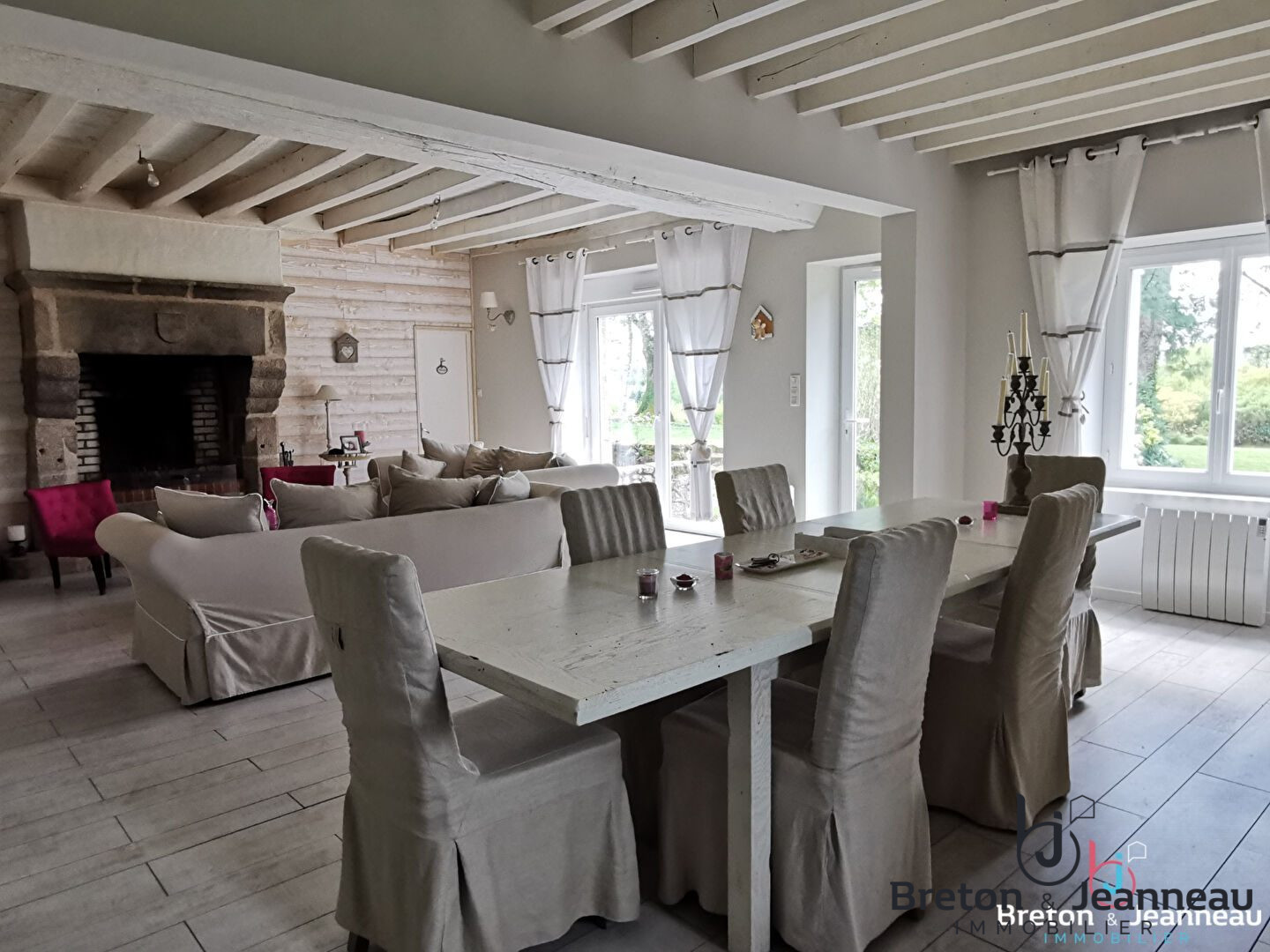 A 12km d'Evron en Mayenne, venez découvrir cette belle propriété composée d'une maison de 116 m² habitables offrant en rez-de-chaussée une pièce de vie de 52m² avec cheminée ouverte et cuisine aménagée/équipée, un bureau, une salle d'eau/wc. A l'étage, un palier desservant quatre chambres, un wc et une pièce d'eau à terminer. En extérieur et sur un parc arboré d'environ 9 000m², vous pourrez bénéficier d'une très belle dépendance d'environ 100m², d'une terrasse et d'un puits. A visiter! Classe énergie : F. Son prix est de 367 900 euros dont 17 900 euros TTC d'honoraires d'agence (5.11%) à la charge de l'acquéreur. Pour plus d'informations, contactez l'agence Breton & Jeanneau Immobilier de Bais au 02.43.53.44.44 en précisant la référence 18124P.