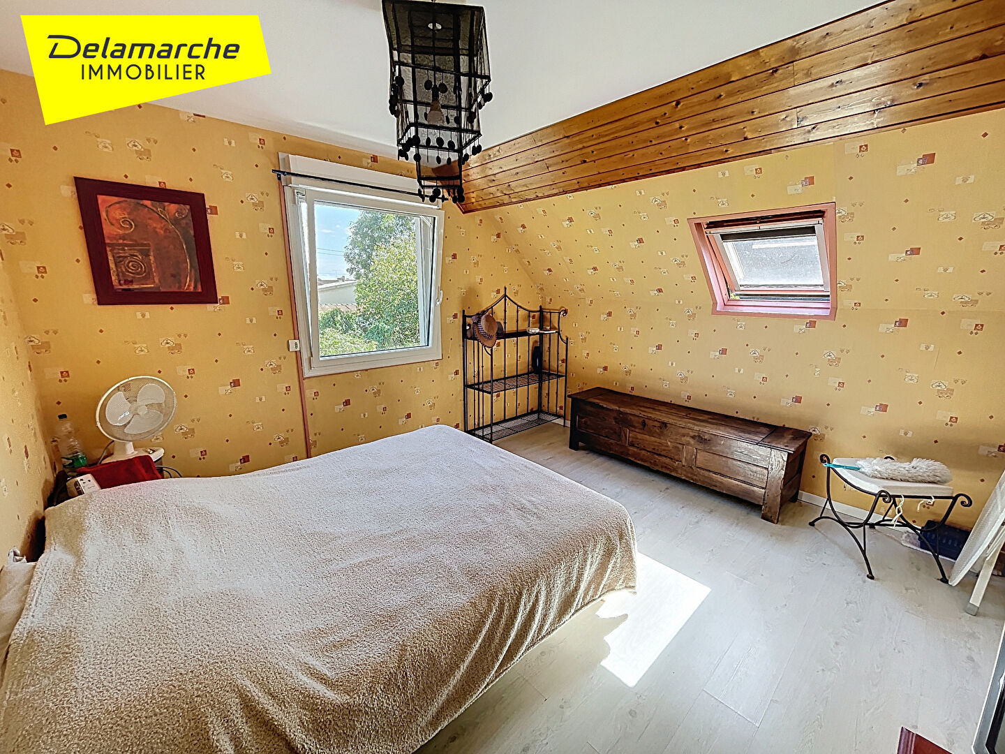 Étage : mezzanine, WC, deux chambres et un bureau, nombreux rangements.