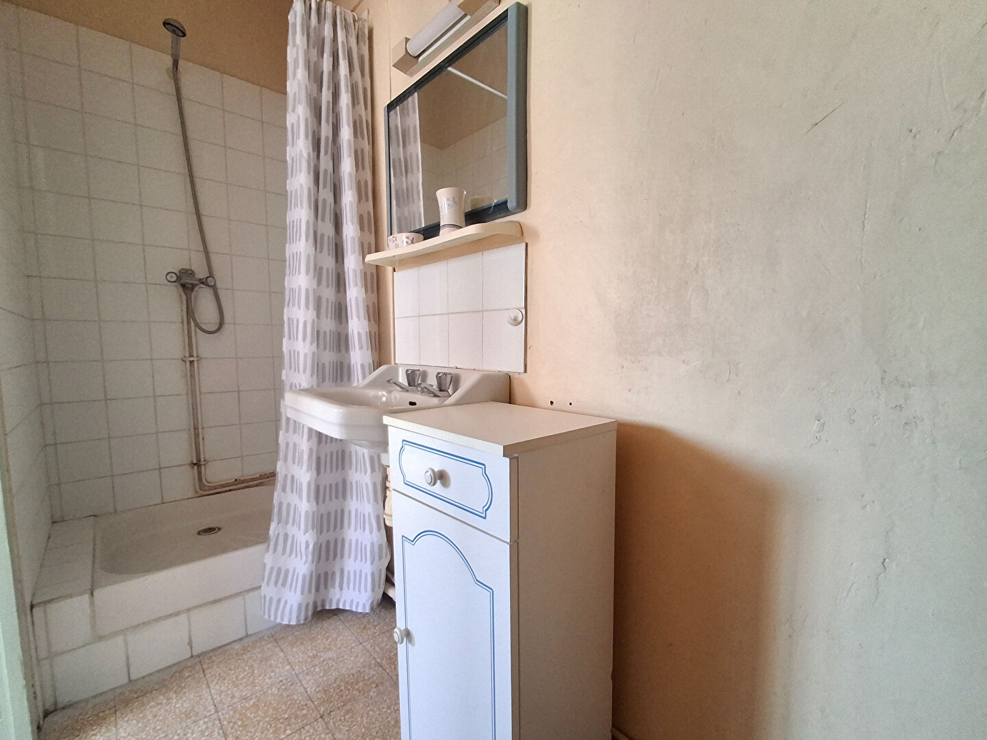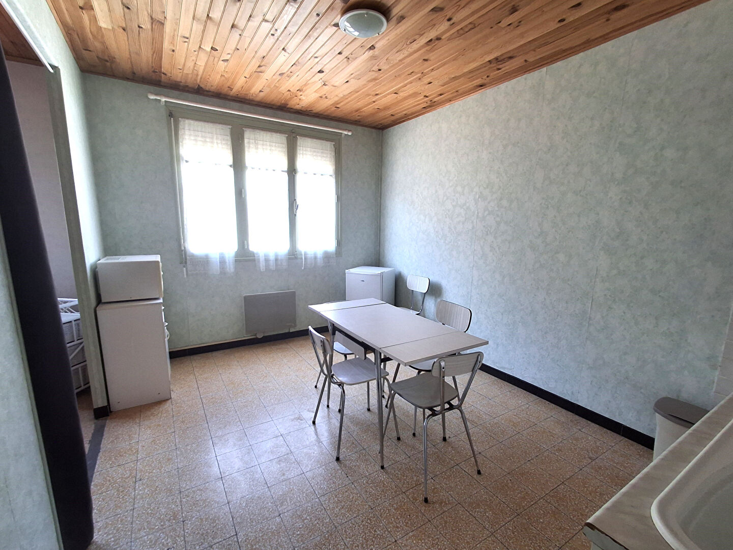 PORT LA NOUVELLE, CENTRE DU VILLAGE, au 1er étage d'une petite copriopriété dormante, appartement composé d'une cuisine ouverte sur séjour, une pièce spacieuse aménagée en chambre, salle d'eau avec wc.