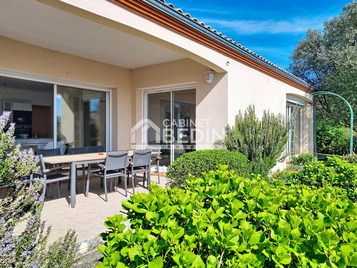 Rouffiac-Tolosan ? villa contemporaine. . Villa familiale située au c?ur du village, au calme, établissements scolaires, commerces et bus accessibles à pied, exposée S/O cette maison de 189 m² se vit essentiellement de plain-pied. Elle offre un vaste séjour traversant de 64 m² avec cuisine équipée et cellier, ainsi qu?une partie nuit composée de deux chambres, un bureau et deux salles de bains. L?étage accueille une suite parentale privée avec sa salle d?eau.