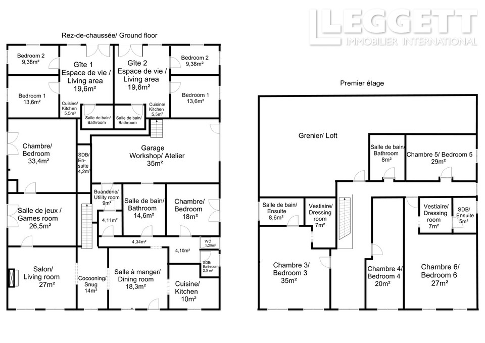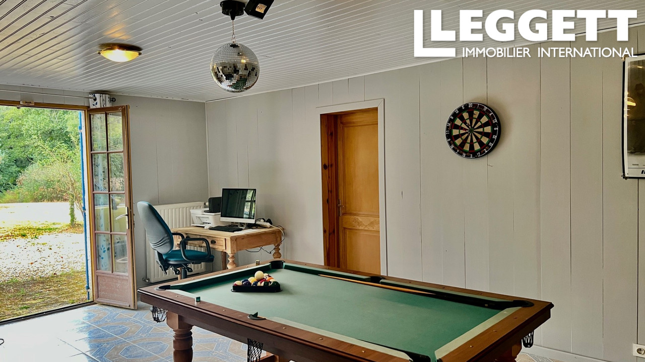 A39463CIL17 - Vie à la campagne pratique et potentiel locatif se combinent dans ce bâtiment bien agencé. Située dans un cadre paisible avec faune, la propriété comprend deux étangs de pêche, une rivière et deux gîtes indépendants. La maison principale offre environ 250 m² : cuisine, salle à manger, salon cosy, séjour avec cheminée, bureau/salle de loisirs, cinq chambres dont une suite parentale avec dressing et salle d'eau, plus plusieurs salles de bains. Chaque gîte dispose de salon/salle à manger, cuisine, chambres et salle d'eau. Idéale comme maison familiale fonctionnelle en campagne française avec opportunité commerciale.