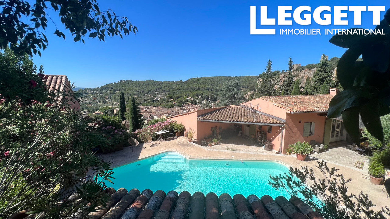 A39547GWI83 - Charmante maison dans le village de Cotignac avec 2 245 m² de jardin, piscine et grand garage. Le village est à deux pas ! La propriété, joliment présentée, comprend 3 chambres, un spacieux séjour/salle à manger, une cuisine, 2 salles de bains et WC. Elle jouit également d'une cuisine et d'un séjour. Dans un environnement privé, elle offre une vue imprenable sur le village et le paysage provençal.