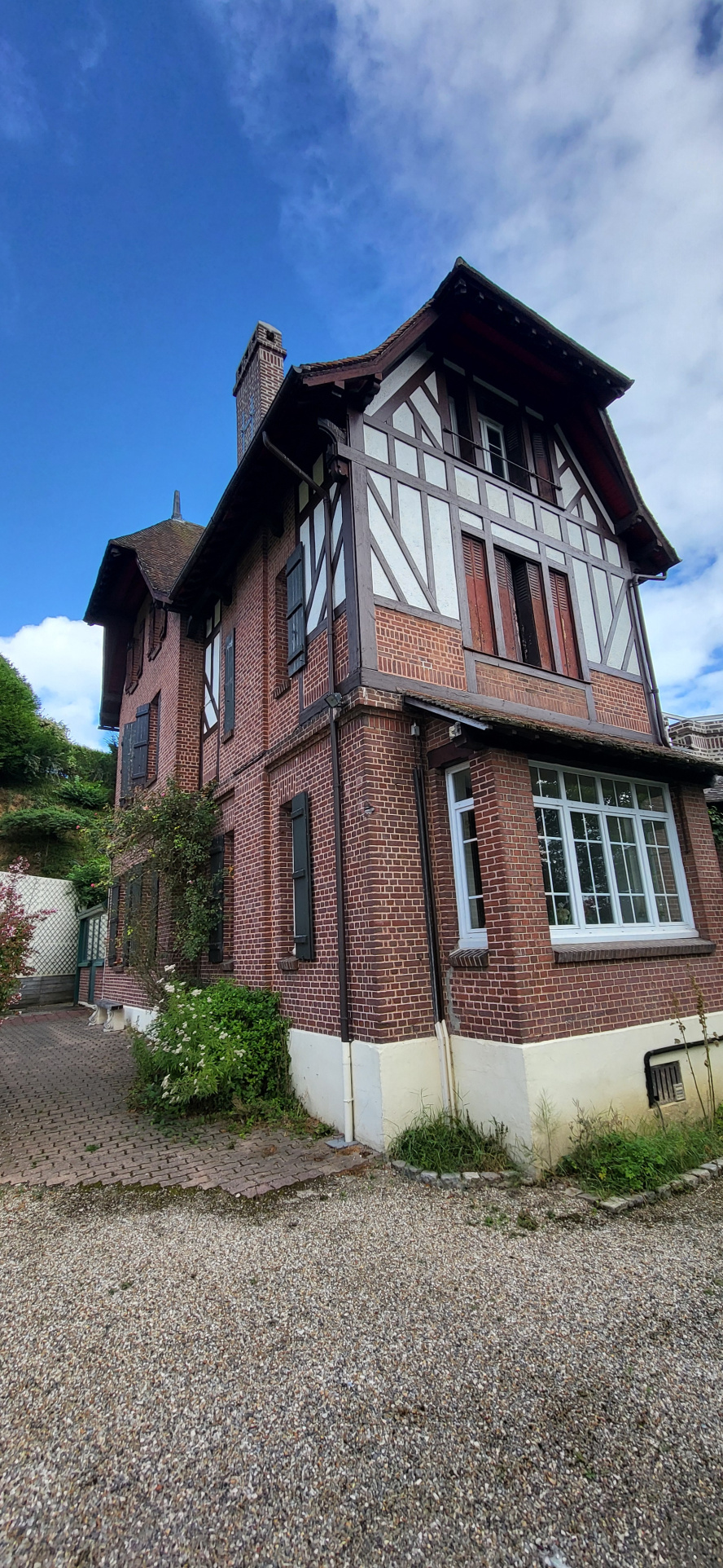 Exeptionnelle, proche Dieppe Villa Anglo-Normande de 307 m2 environ comprenant : Entrée vestibule avec son bel escalier desservant : le séjour, salon avec ses belles hauteurs sous plafond ses parquets authentiques et sa cheminée foyer ouvert, la cuisine avec une belle surface, wc,