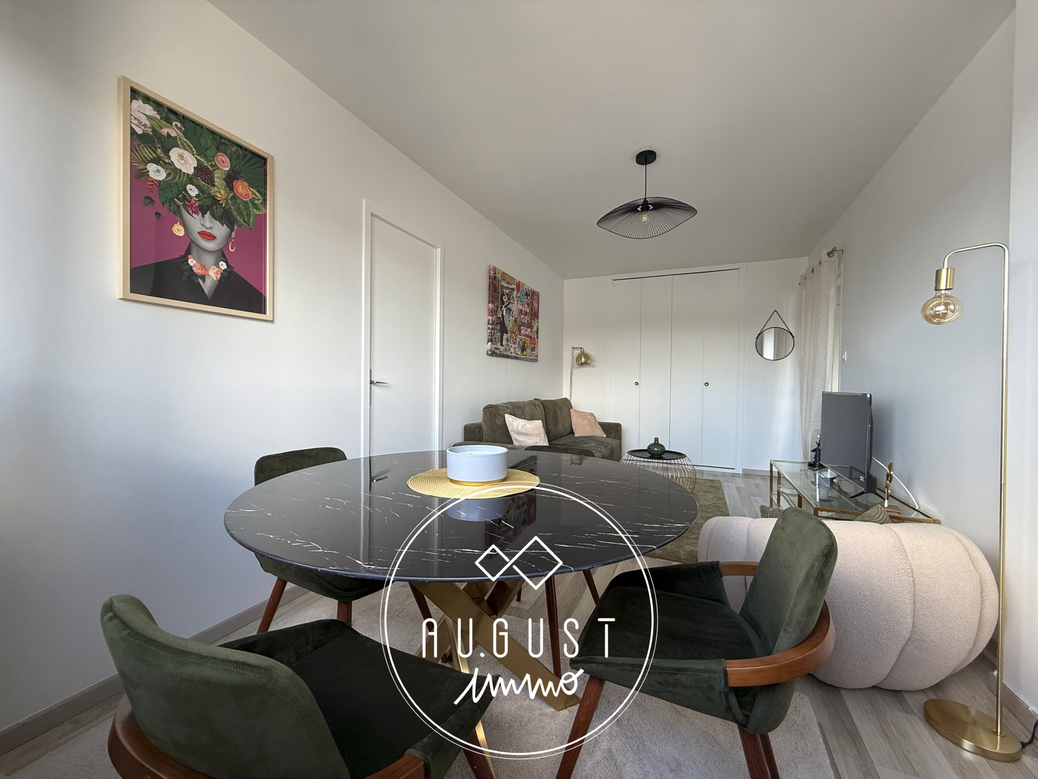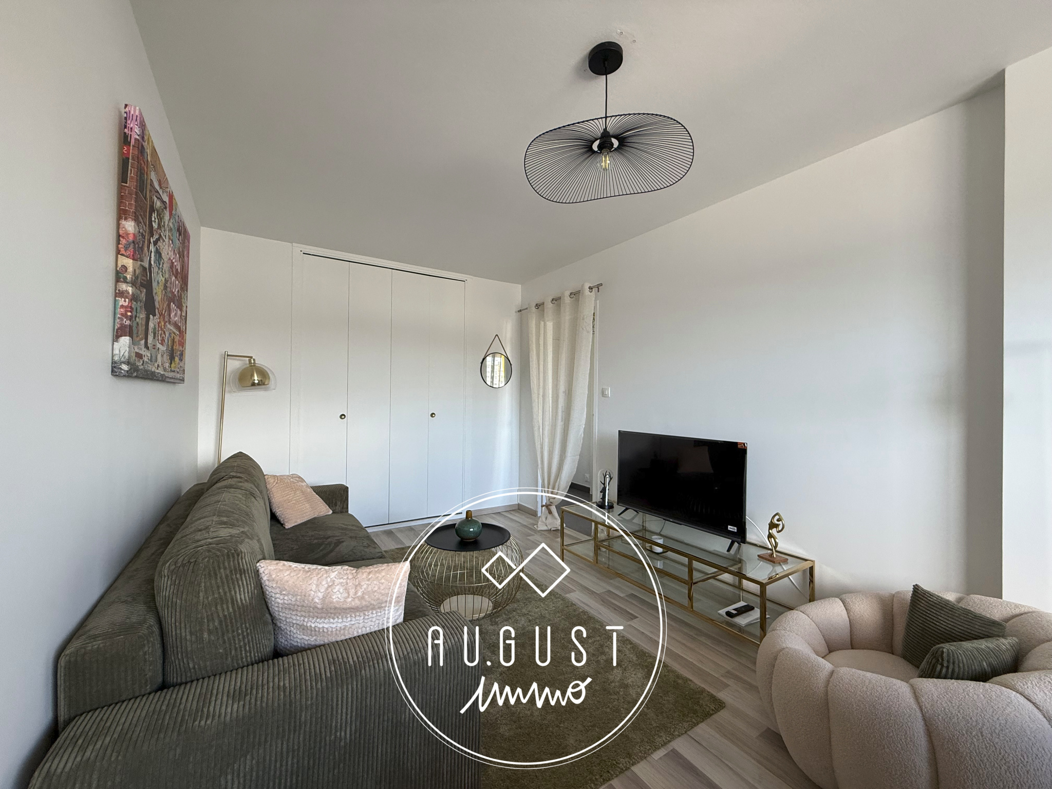 L'appartement se compose d'une entrée accueillante, d'une cuisine moderne aménagée et équipée, d'un salon-séjour lumineux doté d'un grand rangement intégré, d'une chambre, d'une salle d'eau contemporaine, ainsi que d'un WC indépendant.