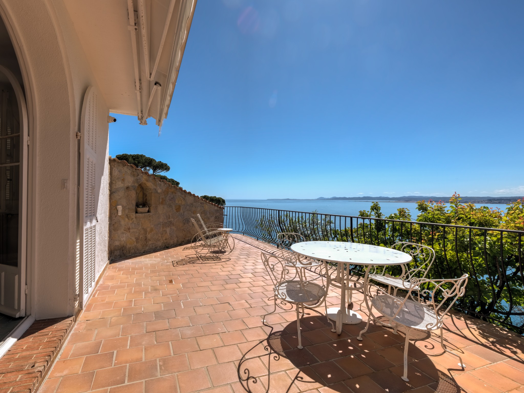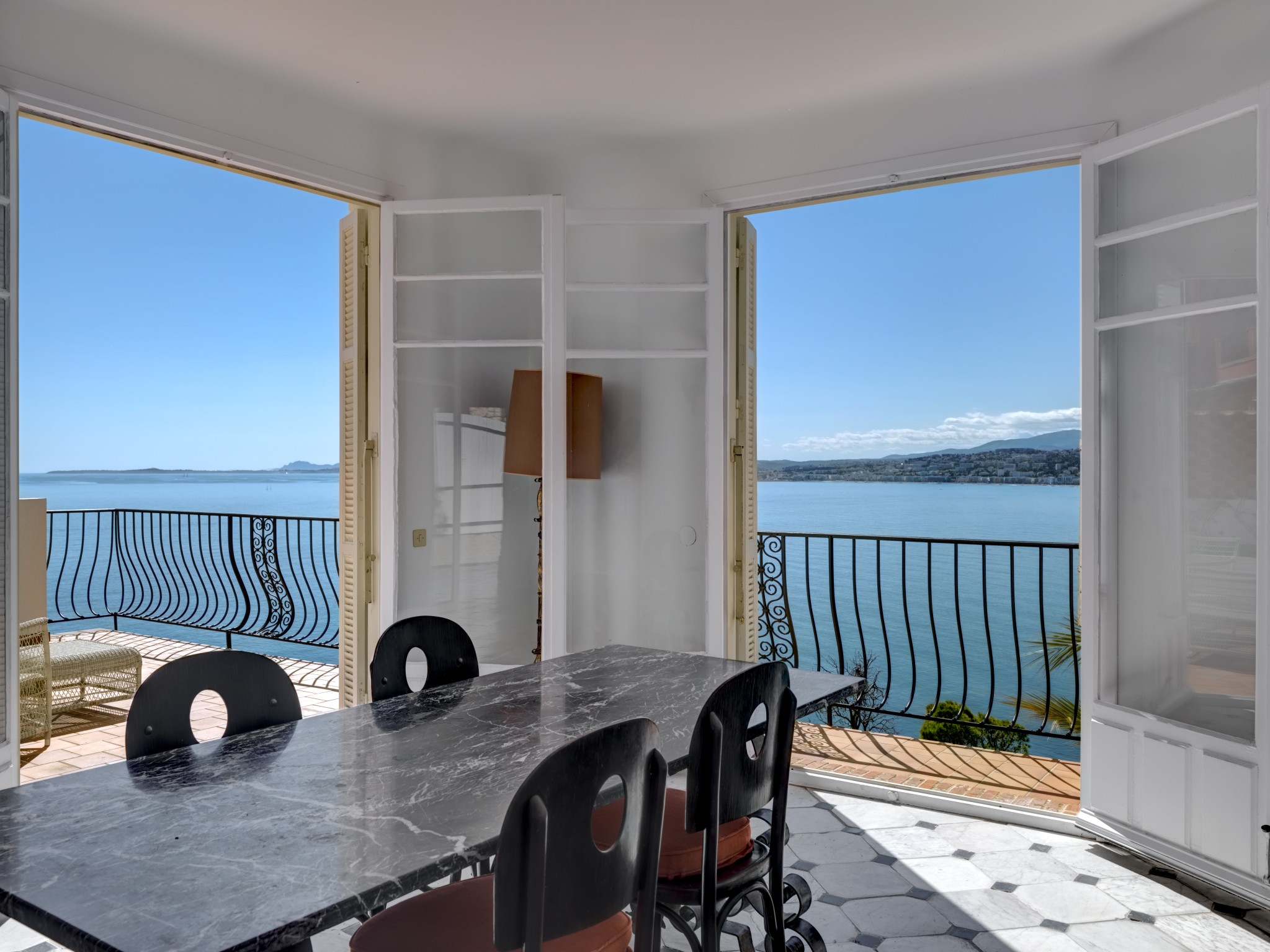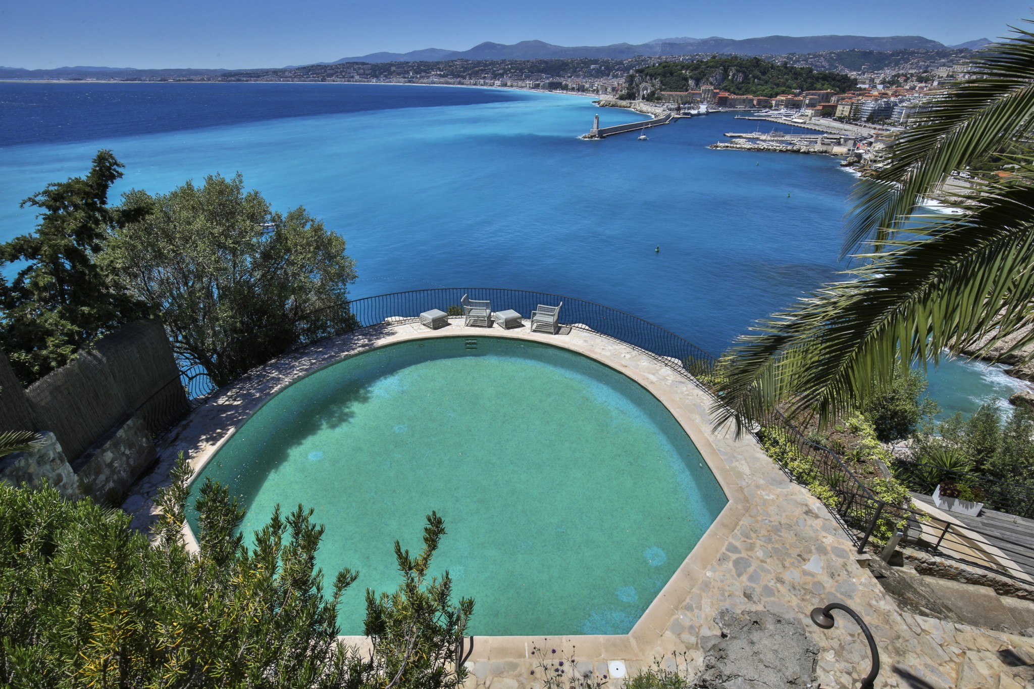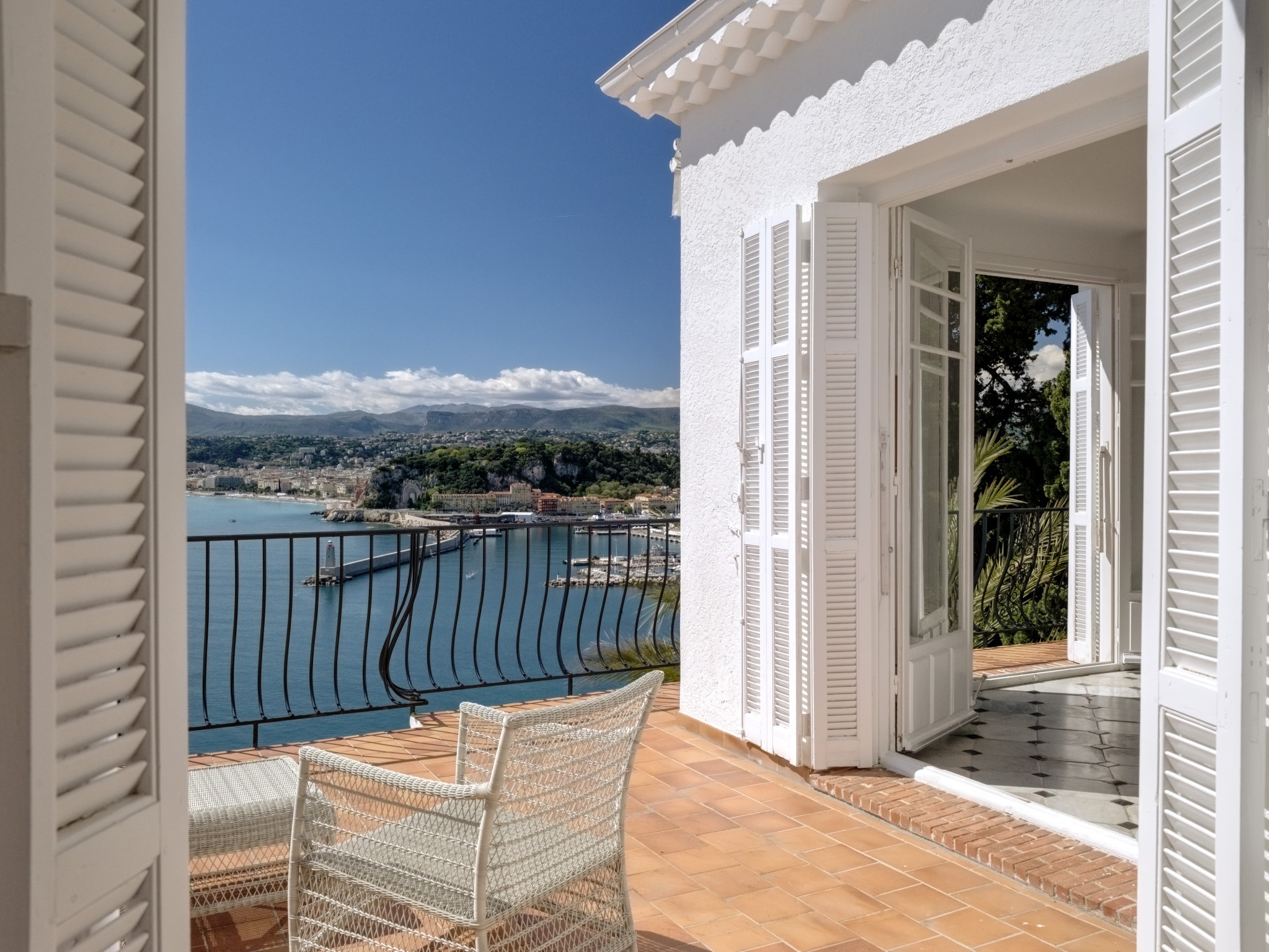 Édifiée sur un terrain de 800 m², la maison offre une superficie de 156 m² sur deux niveaux. Le rez-de-chaussée accueille une vaste entrée, une cuisine indépendante et un spacieux et lumineux séjour de plus de 50 m² ouvert sur une grande terrasse offrant une vue panoramique exceptionnelle sur la Baie des Anges et le port de Nice.