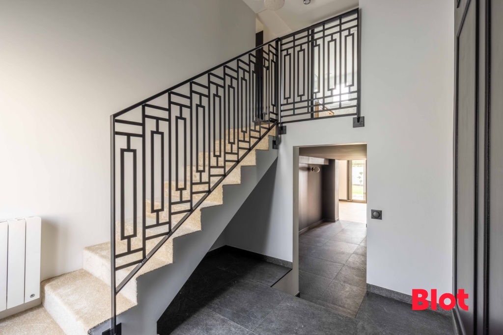 Dès l'entrée, vous serez accueilli par un bel espace avec une agréable hauteur sous plafond, desservant une buanderie avec rangements d'environ 10 m².