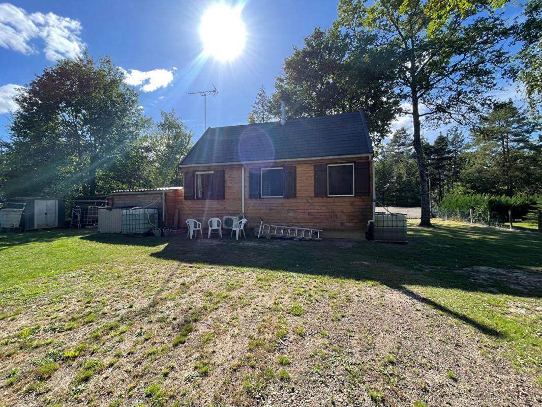 Chalet comprenant séjour avec poêle à bois et clim, cuisine aménagée et autre coin cuisine, une chambre, salle d'eau avec wc neuve avec chauffage au sol.
