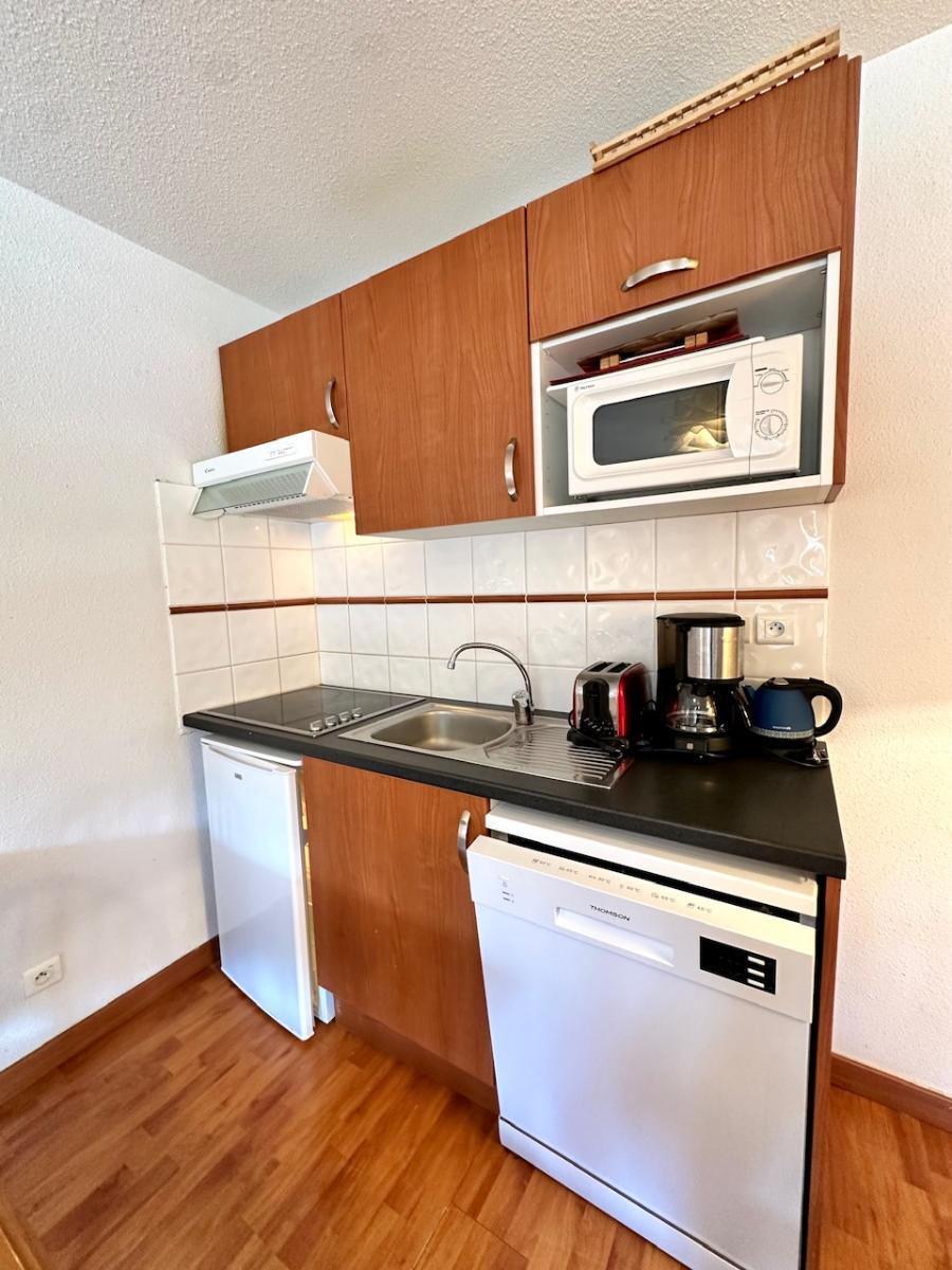 AX 3 DOMAINES, Appartement T2 + cabine de 33.5 m² situé dans une résidence récente de 35 lots principaux, comprenant entrée avec placard, coin nuit, salle de douches-wc, séjour-cuisine, chambre avec placard, le tout donnant sur grande terrasse et piscine intérieure. Adapté aux personnes à mobilité réduite. Exposé Ouest, vendu meublé avec casier à skis + cellier. Charges courantes/an : 2 269 € COMPRENANT les consommations d'eau et d'électricité. Honoraires à la charge du vendeur. Montant estimé des dépenses annuelles d'énergie pour un usage standard : entre 720 et 1 030 euros. Prix moyens des énergies indexés en 2021.