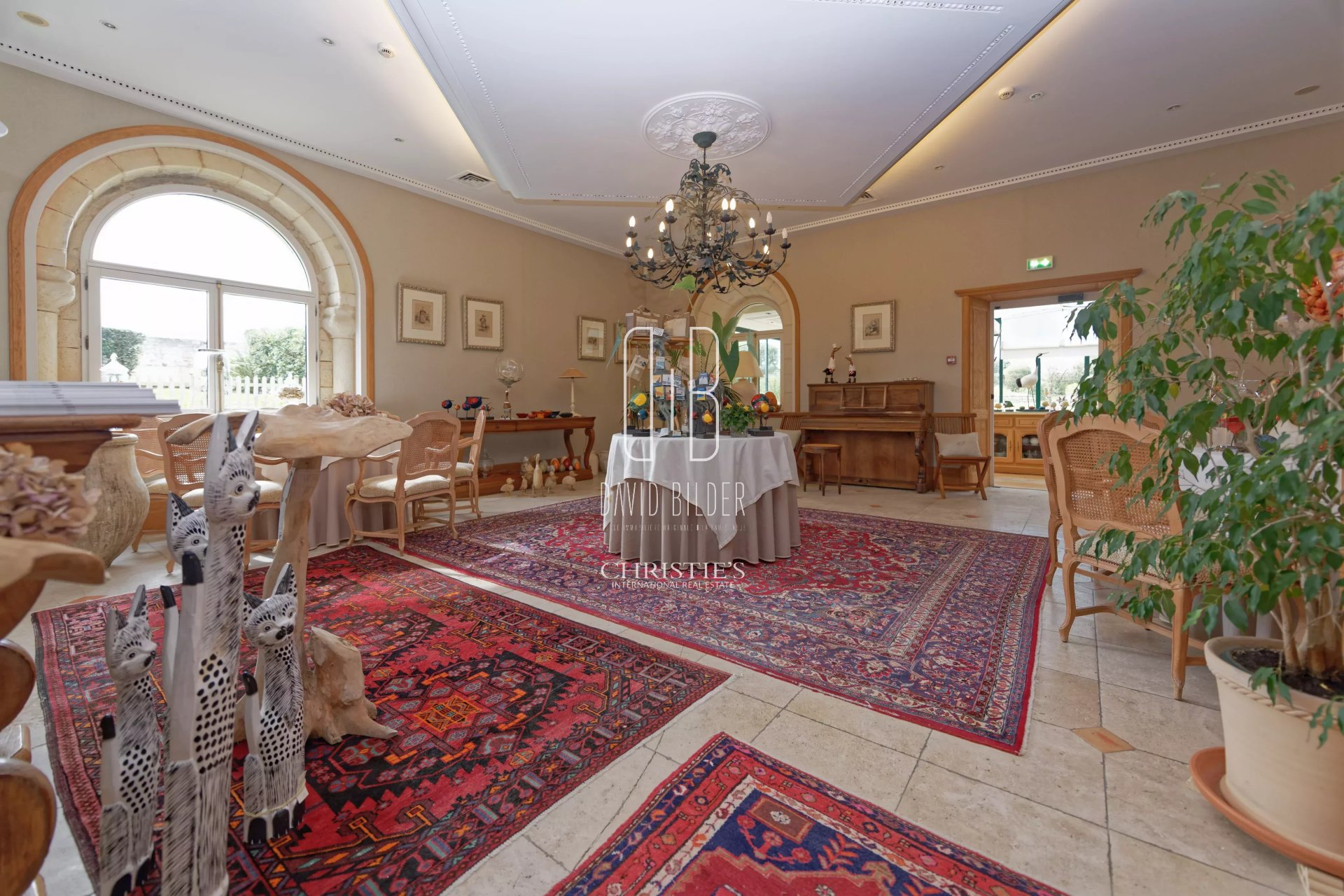 Le tout sur un terrain clos de murs de pierre, 8 garages et un studio de gardien.