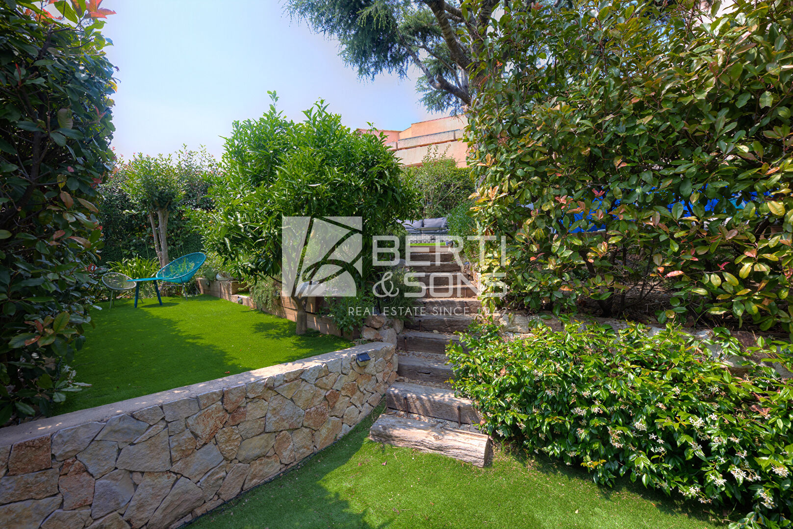 Le groupe Berti and sons vous propose à la vente ce bel appartement traversant et rénové en rez-de-jardin de 98.51m² habitable ( 79.36m² en LC + loggia intégrée au séjour de 16.05m² et arrière cuisine 3.10m²) situé dans un domaine recherché , sécurisé 24h/24 avec piscines, tennis et club de fitness. L'appartement est entièrement climatisé et se compose comme suit :