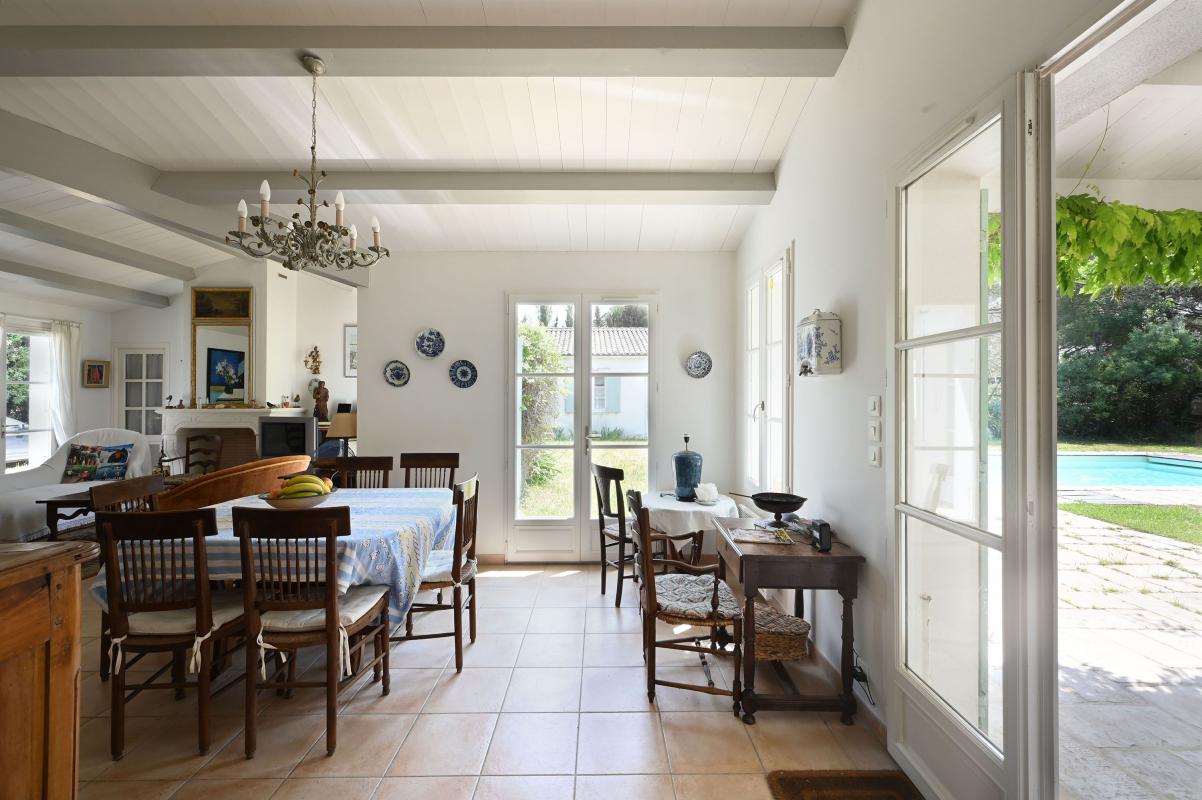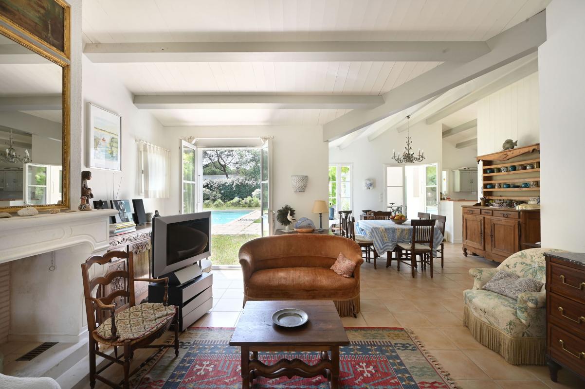 Immobilier Ile de Ré, Les Portes en Ré - Située dans un environnement privilégié proche de la plage et sur une parcelle de plus de 2500 m², cette propriété se compose de deux maisons offrant chacune une pièce de vie, cuisine. Au total 7 chambres, 5 salles d'eau, 2 salles de bains. Une 8éme chambre indépendante avec sa salle d'eau. Exposée à l'Ouest, la propriété bénéficie d'un superbe jardin paysager, d'une piscine chauffée et d'un garage. Un lieu idéal pour profiter en famille du charme et du calme de l'île de Ré.