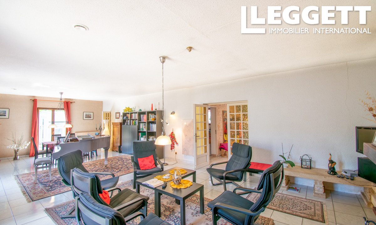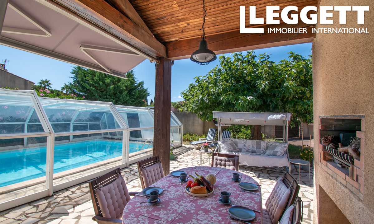 A38672JAV11 - Dans le village recherché de Vinassan, à seulement 15 minutes des plages méditerranéennes et de Narbonne, se trouve cette belle maison familiale de plain-pied de 188 m² avec piscine et jardin clos. Construite en 1998 et bien entretenue, elle offre un lumineux séjour de 60 m² avec cheminée, une cuisine de 20 m², 3 grandes chambres, 2 salles de bains, 3 toilettes et une mezzanine idéale comme bureau. Côté pratique : un garage de 26 m², un cellier/buanderie de 19 m² avec pompe à chaleur 180L, et 3 places de stationnement privées. À l'extérieur : une piscine de 50 m² avec abri télescopique, une terrasse couverte de 12 m² et un jardin exposé sud-est de 667 m².