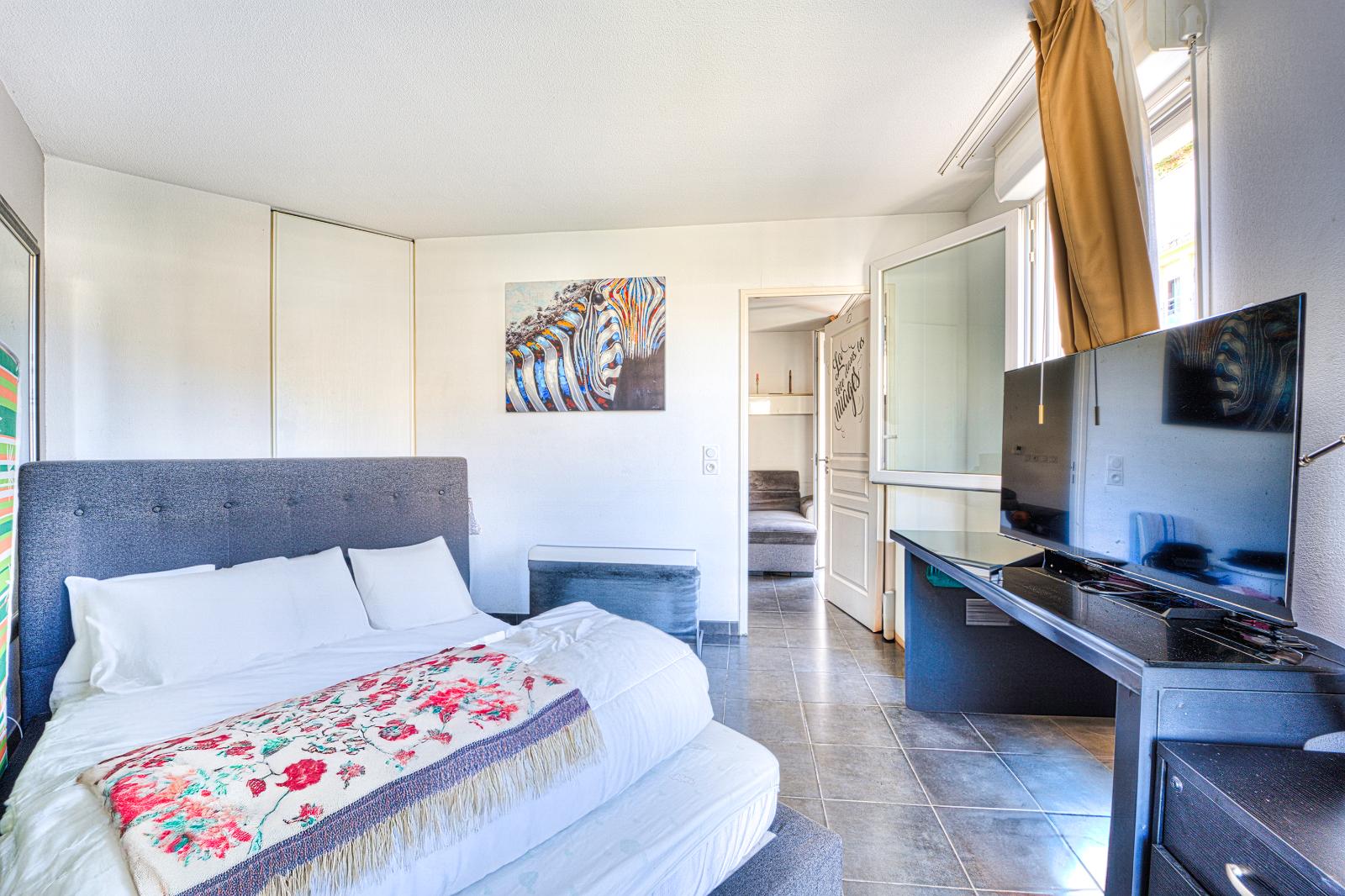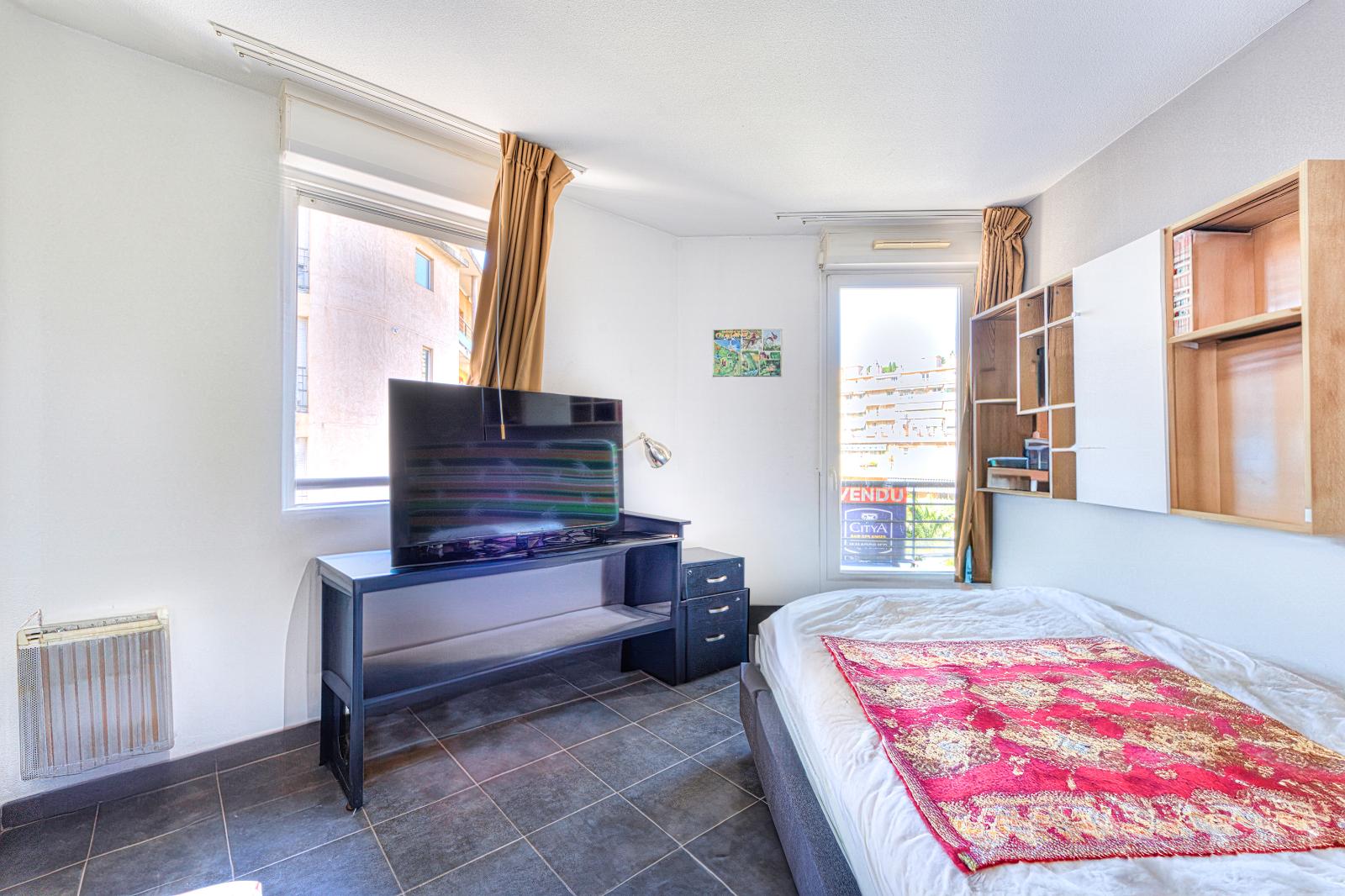 Le bien comprend : une entrée avec placard, une kitchenette aménagée et équipée ouverte sur le séjour lumineux avec un accès balcon. Côté nuit, une chambre indépendante avec placard de rangement et un balcon ainsi qu'une salle d'eau avec WC.