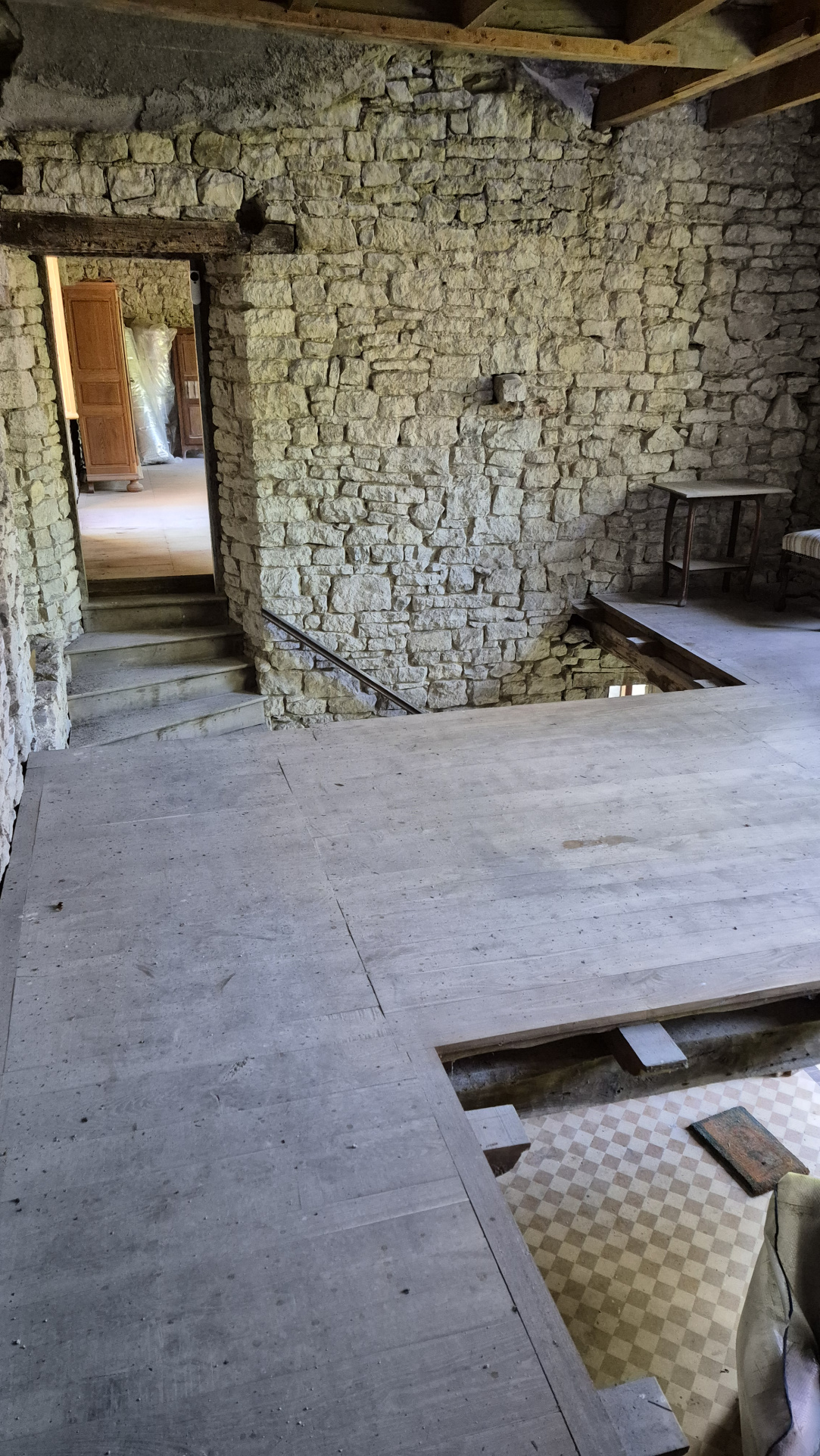 Les derniers propriétaires ont commencé la restauration de la partie rez-de-chaussée actuellement habitable.