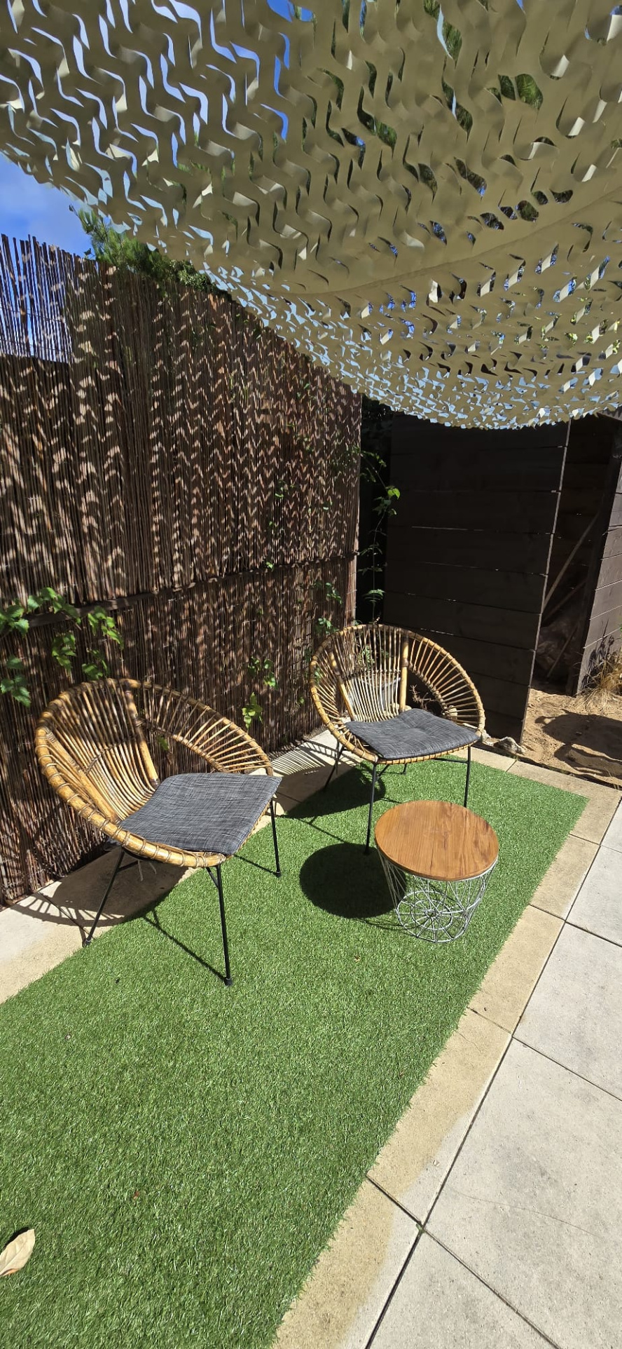 Côté extérieur : terrasse et jardinet cooconing à l'abris des regards. Et la bonne nouvelle le prix indiqué comprenant le mobilier, décoration et ustensiles ... le top !