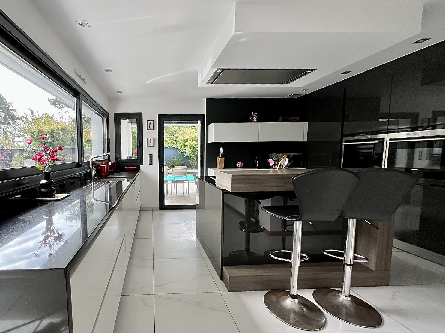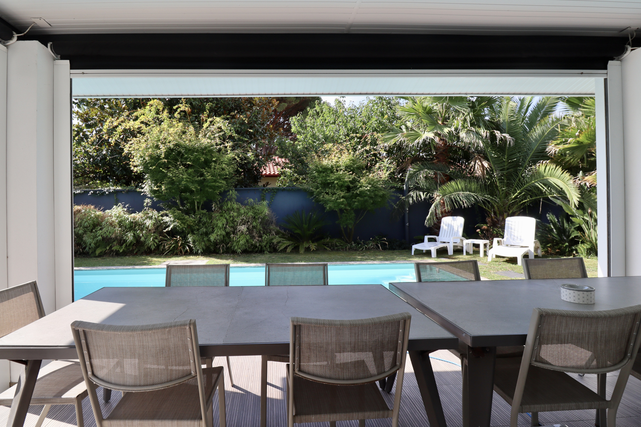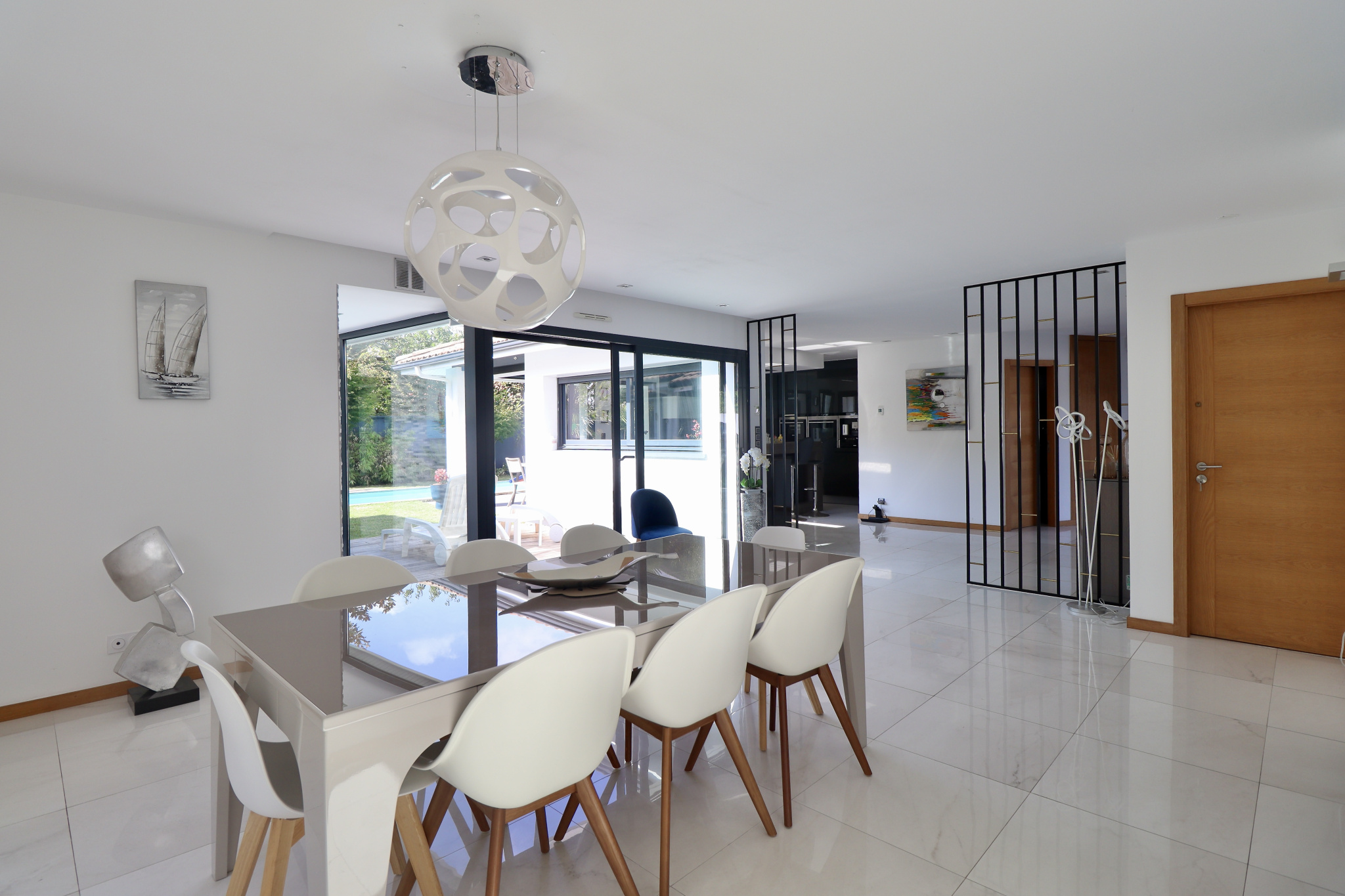 Dès l'entrée, des espaces généreux s'ouvrent à vous avec une luminosité omni-présente et une vue sur le jardin et la piscine.