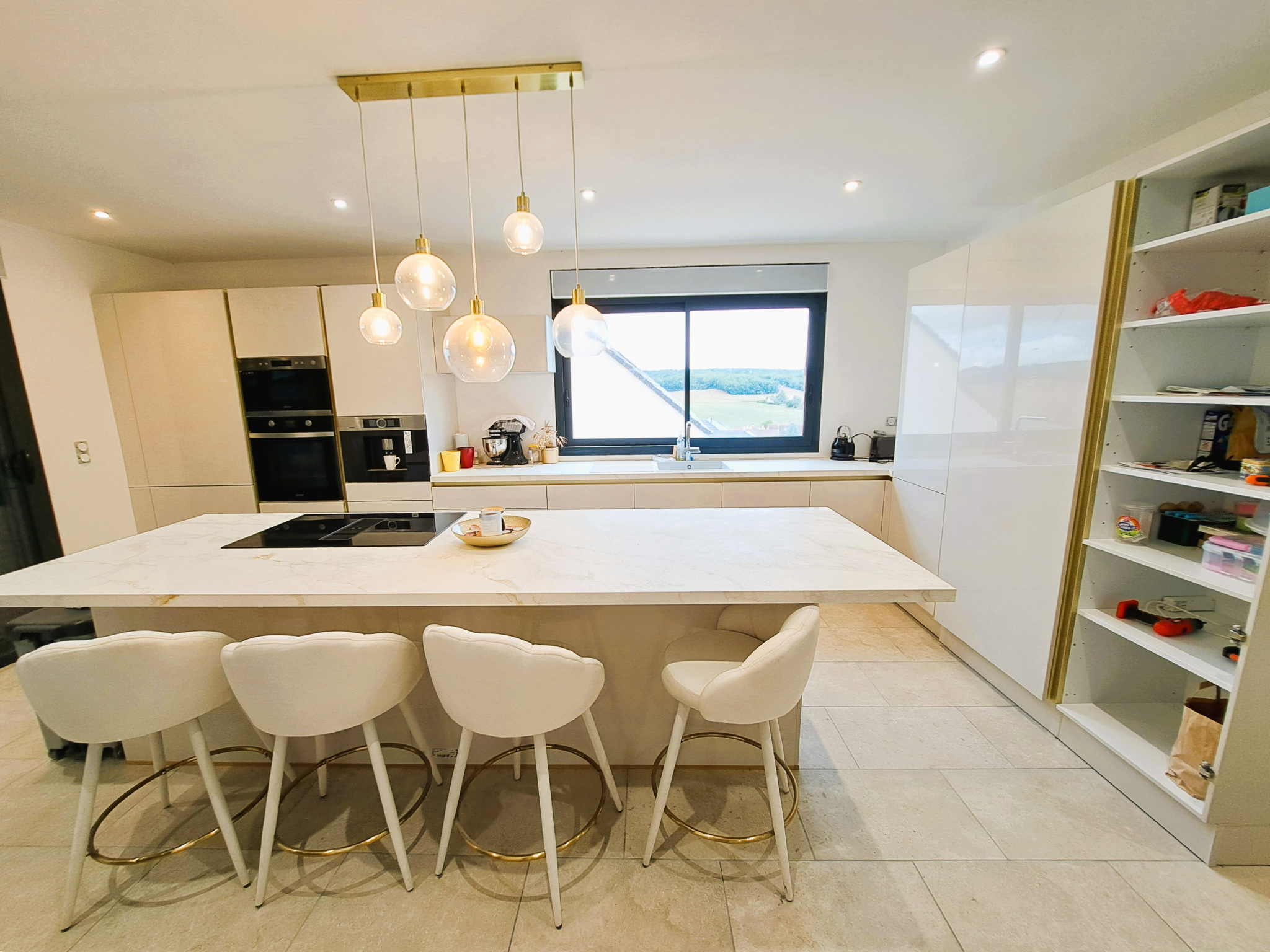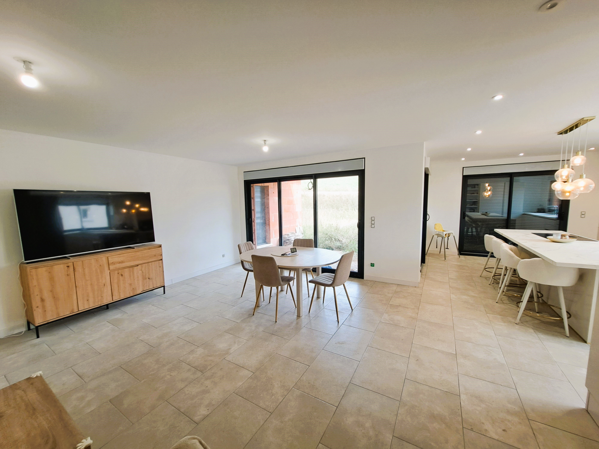 AU RDC : entrée, cuisine aménagée équipée d'environ 23 m2 ouverte sur un vaste salon - salle à manger de 33 m2 avec une grande baie vitrée, quatre belles chambres dont une suite parentale de 25 m2 avec dressing et salle d'eau (à installer), bureau, buanderie, cellier, salle de bains (avec baignoire et douche, à installer), dégagements, wc avec lave-mains. Sous-sol total avec garage et porte automatique. Chauffage électrique. Double vitrage alu. Volets électriques.