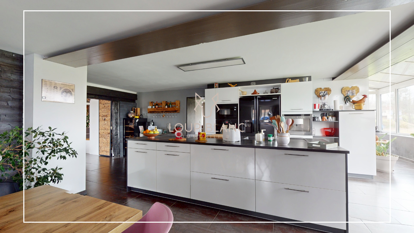 LOUP BLANC Immobilier vous présente à la vente, dans une impasse sur la commune de Trévenans, cette magnifique grange entièrement rénovée avec goût de 289 m2.