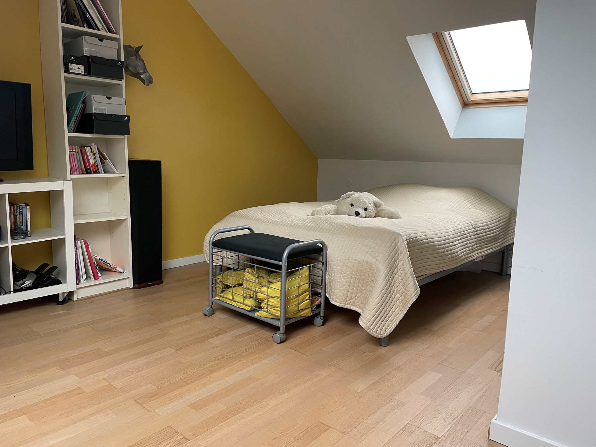 Etage: Belle pièce palière à usage de bureau, 2 chambres, salle de bains avec wc.