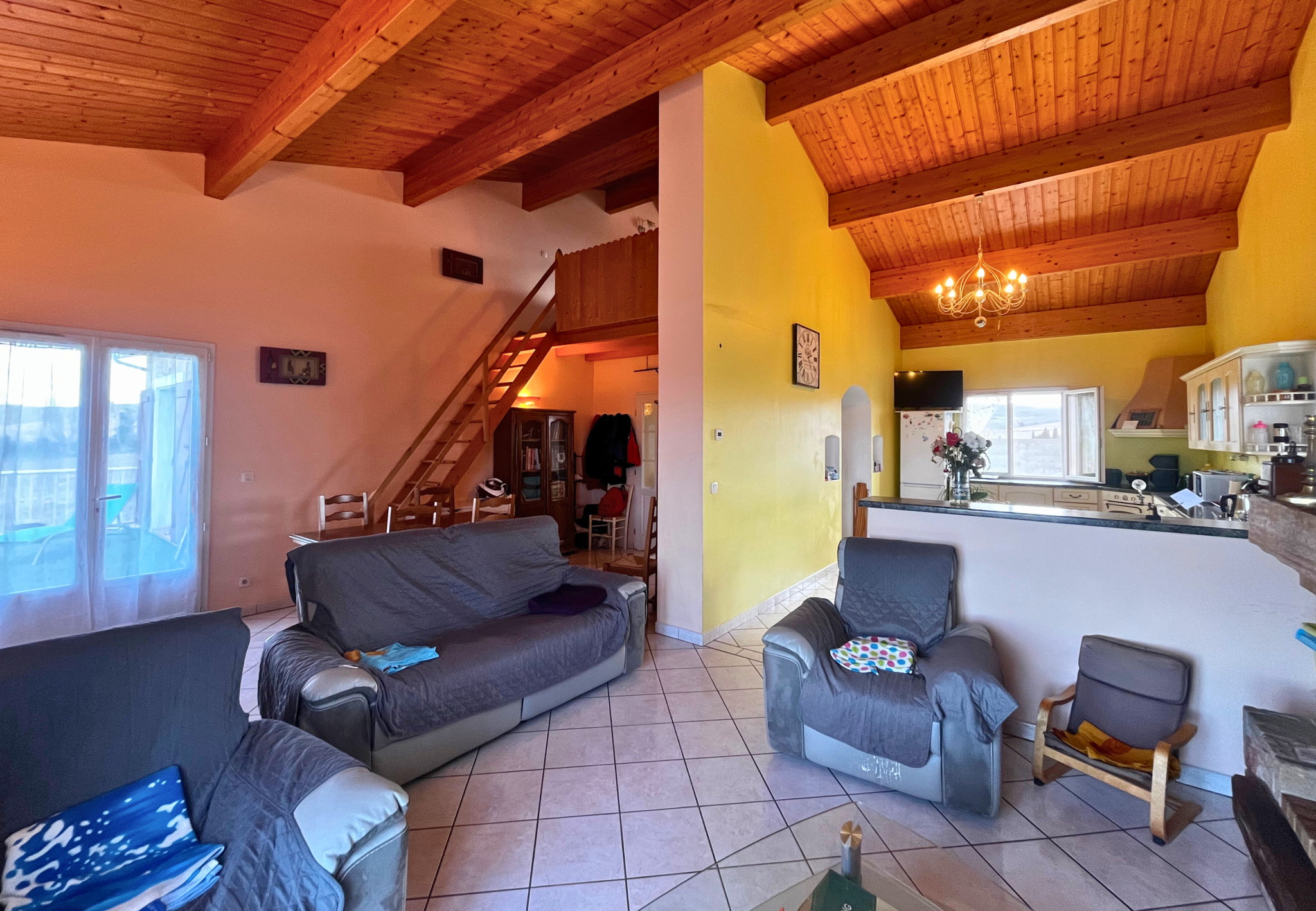 Cette spacieuse maison familiale de 120 m2, construite en 2010, est située sur un vaste terrain de 6 300 m2 au coeur des paysages pittoresques du Razès.