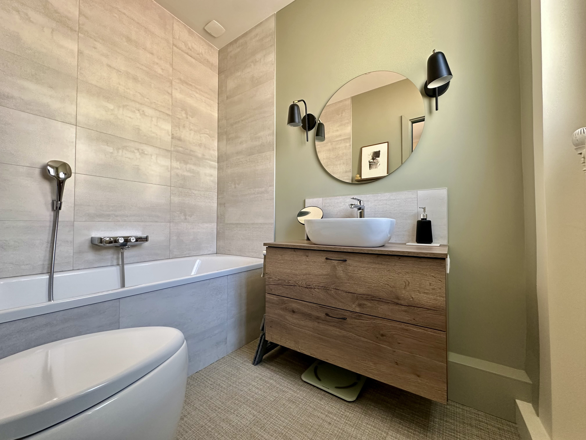 Et une spacieuse suite parentale avec salle d'eau, WC et accès à une loggia privée