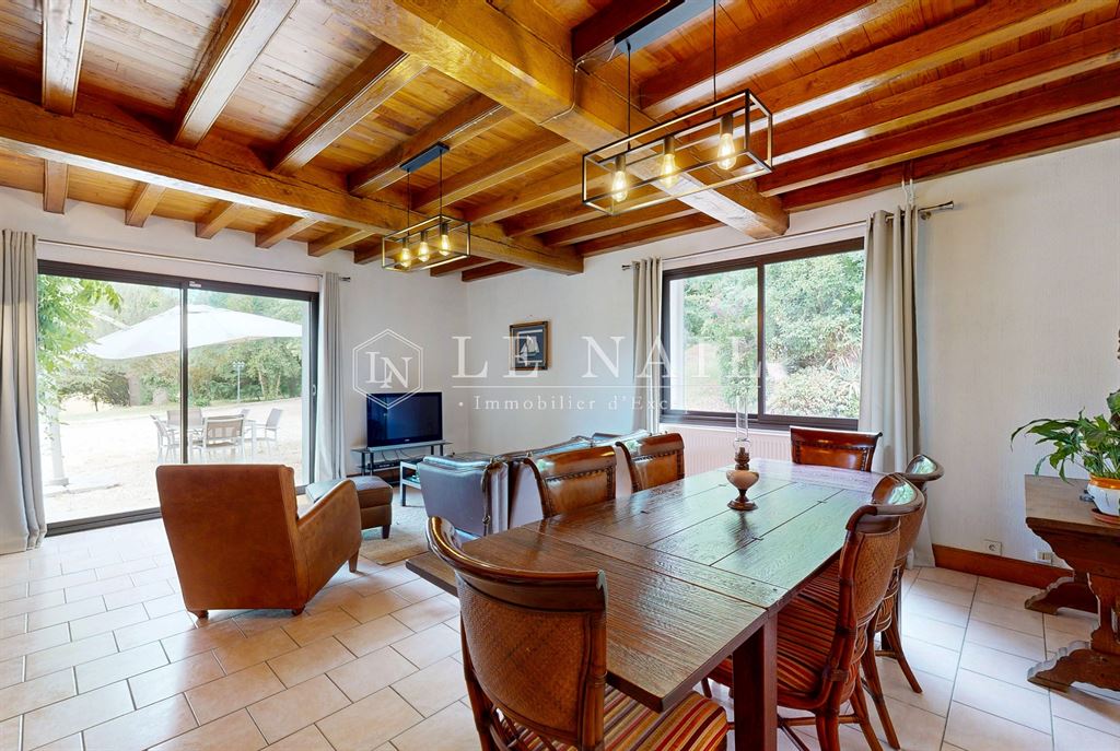 La demeure principale développe environ 180 m² habitables. En retour sur l’arrière, une maison d’amis attenante d’environ 100 m² complète harmonieusement l’ensemble. Les deux habitations sont communicantes, permettant une utilisation souple selon les besoins : maison familiale, accueil d’amis ou activité d’hébergement.
