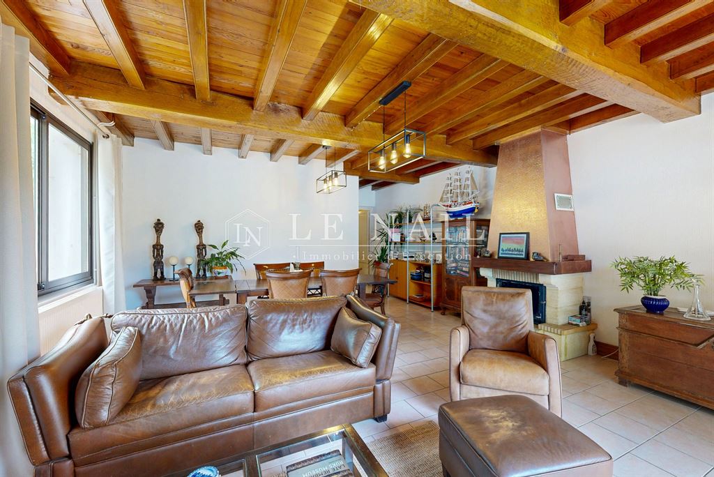 L’étage, accessible par un élégant escalier moquetté, est actuellement entièrement dédié aux propriétaires. Il comprend une vaste chambre de 35 m², une salle d’eau contemporaine avec double vasque, douche à l’italienne et WC, un dressing, un bureau et des toilettes indépendants.