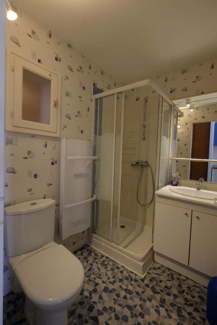 AGENCEMENT FONCTIONNEL (Type T2 Cabine) : L'appartement, lumineux et en excellent état, comprend : un séjour lumineux avec un coin cuisine ouverte entièrement équipée. Une chambre cabine (idéale pour les enfants ou l'appoint). Une salle d'eau avec WC.