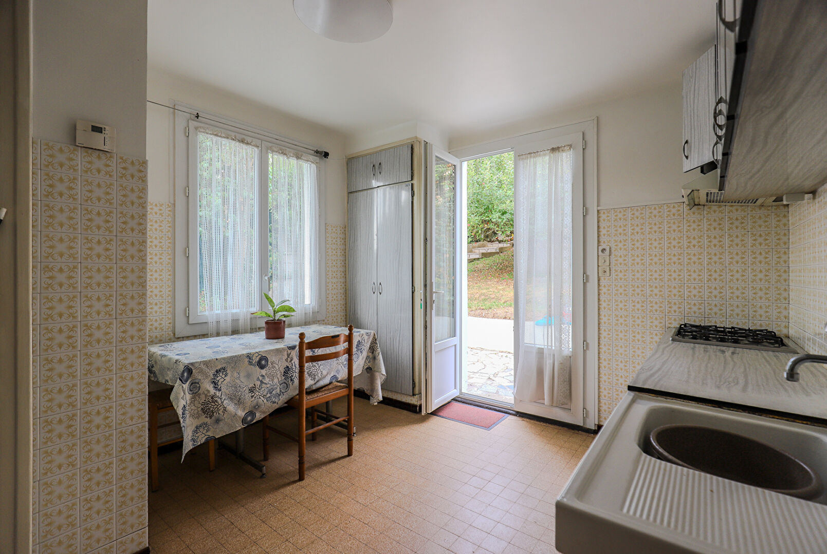96 m², entièrement rénovée en 2025, est une véritable pépite. Elle est implantée sur un terrain piscinable arboré de 635 m², agrémenté d'arbres fruitiers et de deux belles terrasses intimistes.