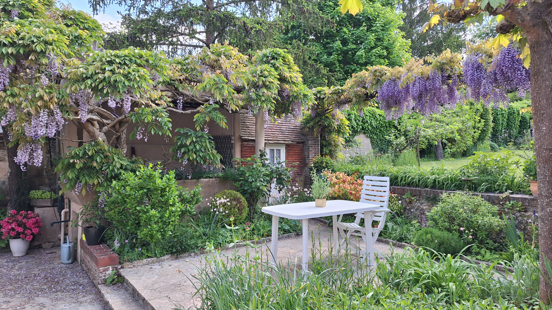 À l'extérieur, vous profiterez d'une terrasse orientée plein sud, d'un jardin clos et joliment fleuri, ainsi que d'un charmant lavoir.