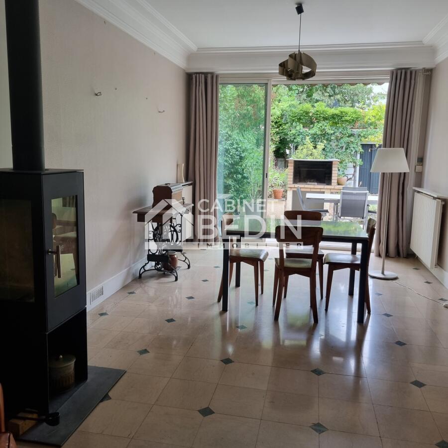 TALENCE : MAISON AVEC JARDIN ET GARAGE . Idéalement située dans un quartier résidentiel, à proximité immédiate des commerces, des barrières de Pessac et de Saint Genès et de la gare, cette agréable maison individuelle allie fonctionnalité et qualité de vie.