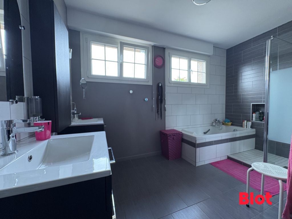 Le rez-de-chaussée accueille également une chambre avec placard, une grande salle de bains et un WC séparé offrant un confort de vie optimal.