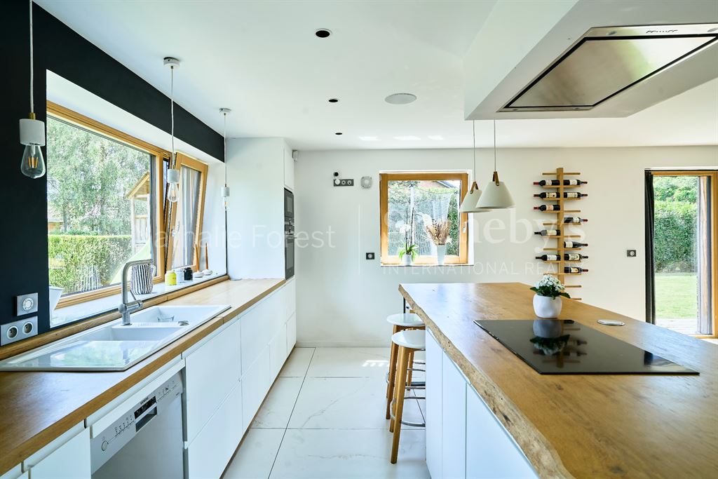 À seulement quelques mètres du cœur prisé du village de Bondues, cette maison d’architecte au caractère résolument unique a été entièrement repensée en 2015 par un cabinet de renom, alliant design contemporain, matériaux de qualité et volumes spectaculaires. Édifiée sur une belle parcelle paysagée de 1133 m², elle se distingue par son architecture audacieuse en semi plain-pied et son atmosphère baignée de lumière.