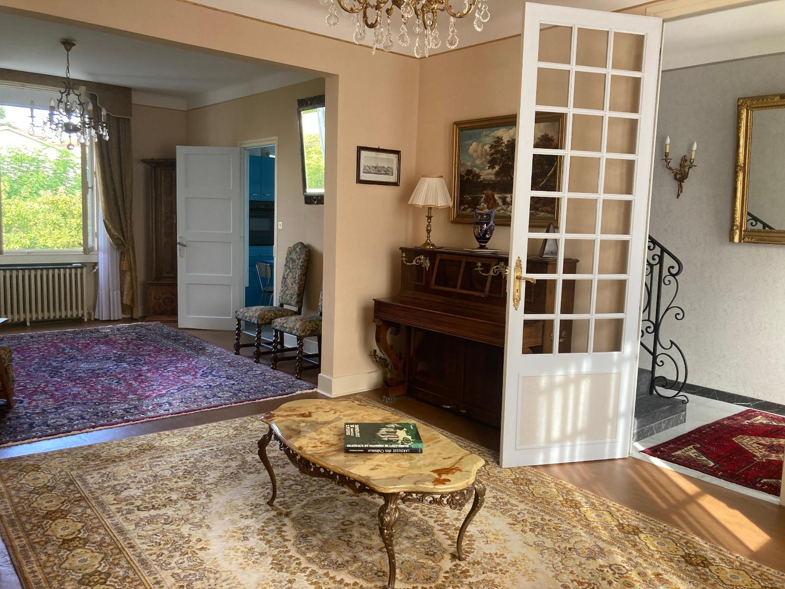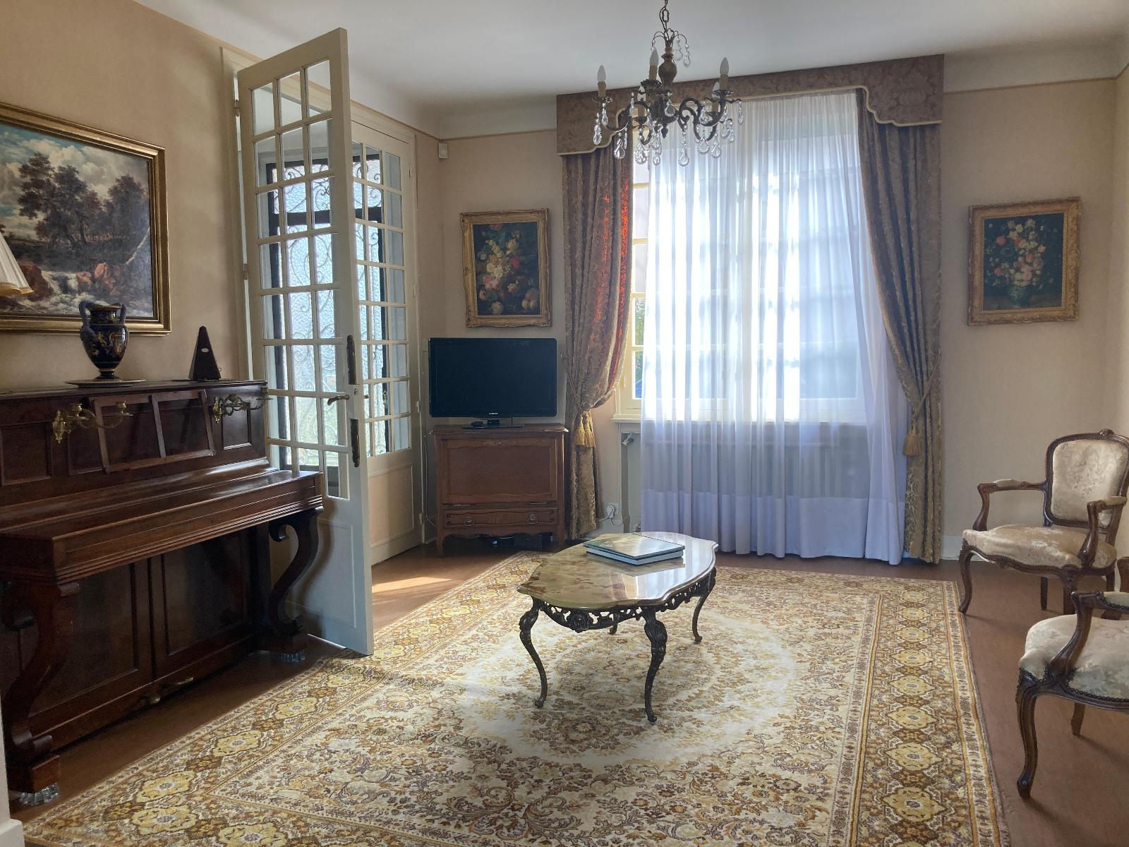 En rez-de-chaussée : hall d'entrée - double salon/séjour (32m2) - cuisine séparée aménagée - une grande chambre de 18m2 avec rangement - salle d'eau - WC séparés.