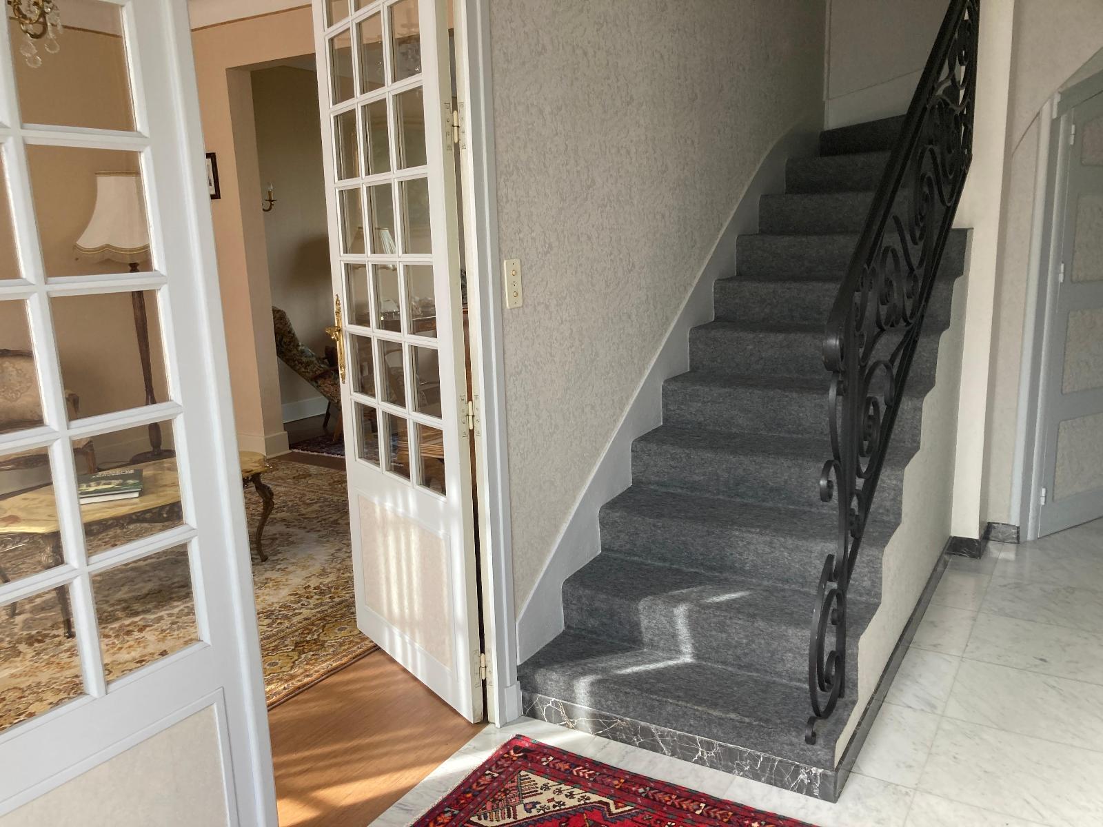 Au 1er étage : un pallier distribue 2 chambres de 12 et 15m2 - une salle de jeux de 20m2 (ou une 3ème chambre) - un bureau - 1 point d'eau - des WC séparés (possibilité de modifier et de créer une 2eme salle d'eau)