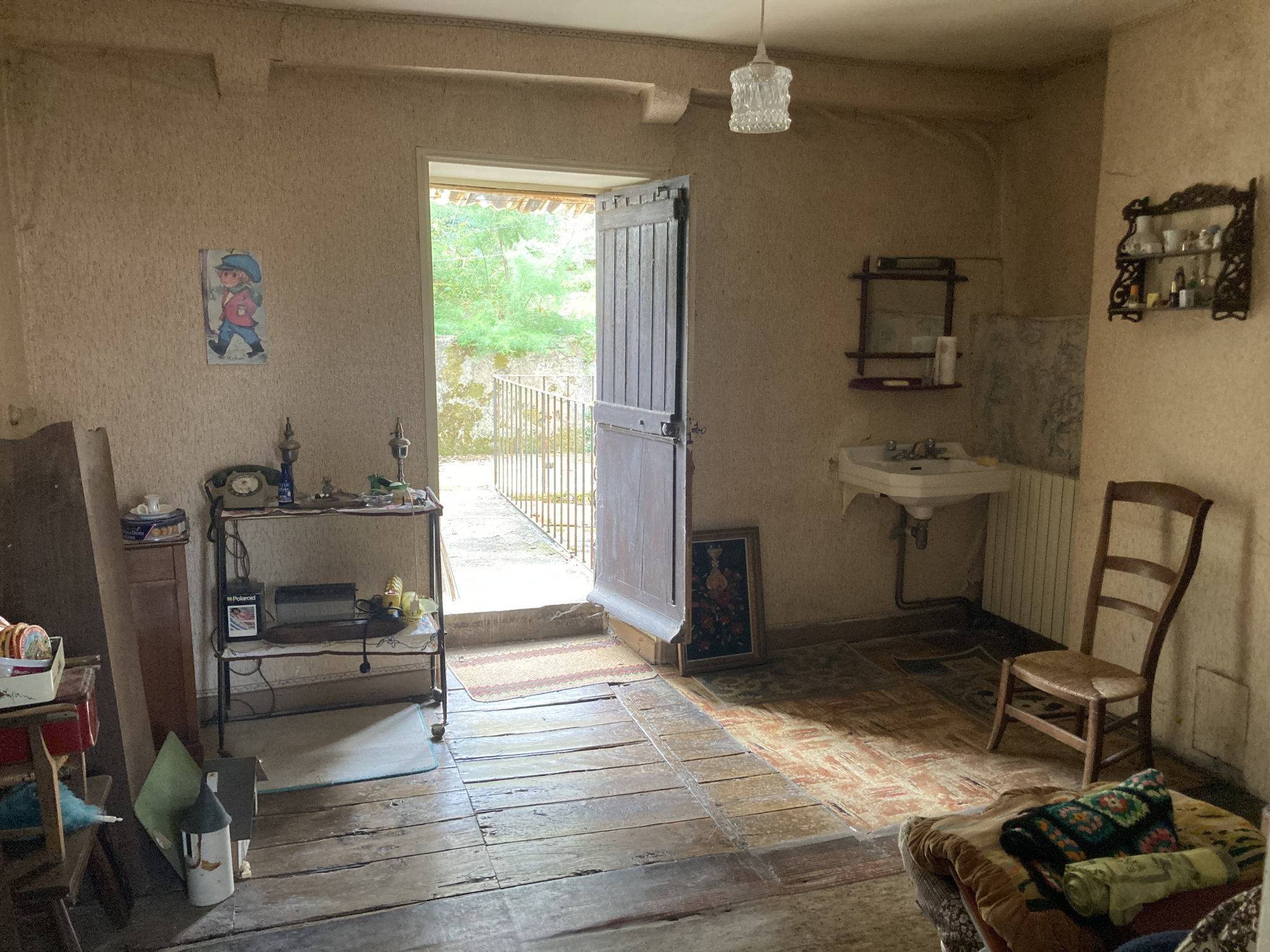 - 1er étage : cuisine, séjour, couloir, salle de bain, WC.