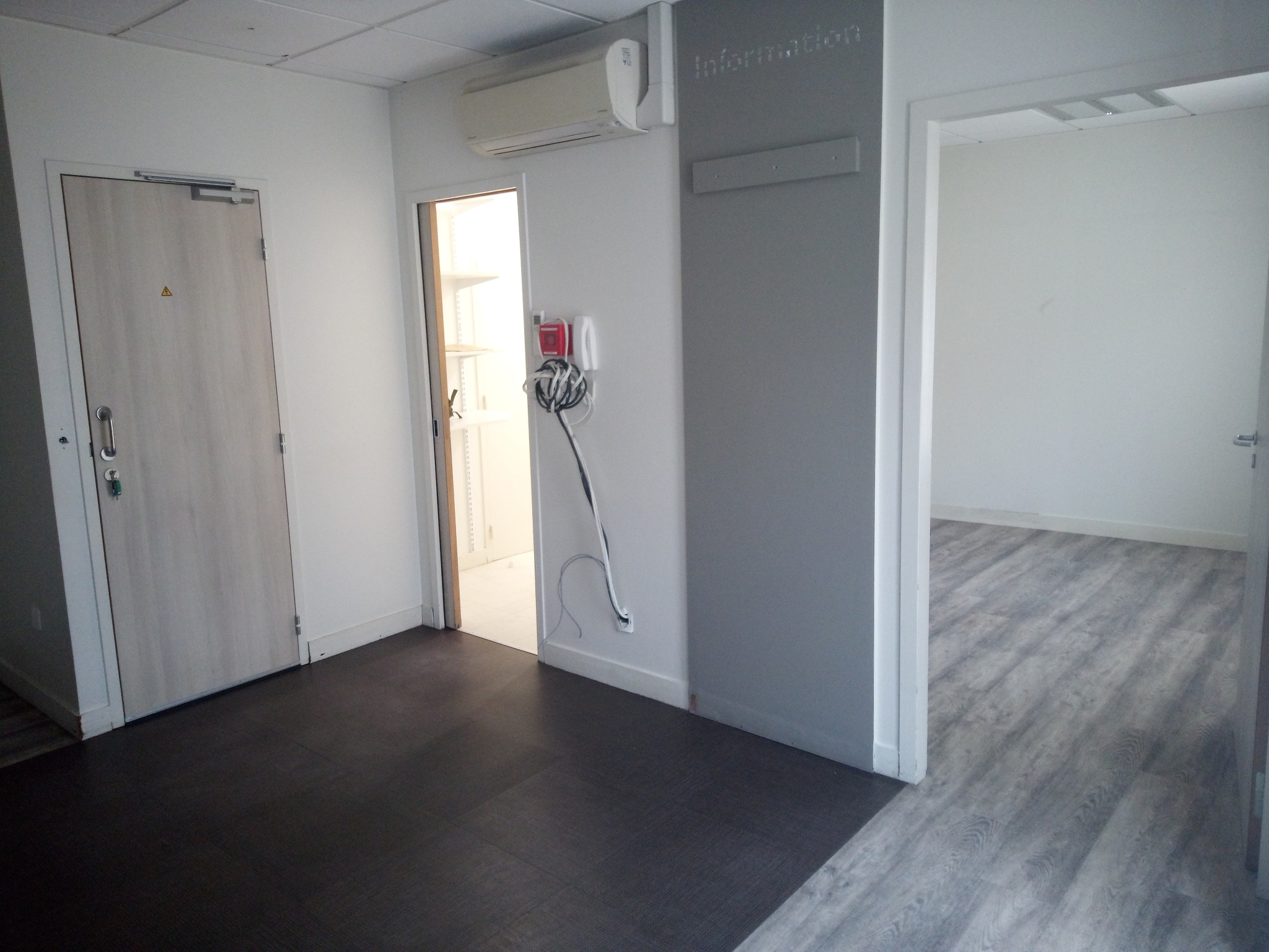 Hall d'entrée, espace accueil, 2 bureaux, une pièce à sécurité renforcée disposant d'un accès sur