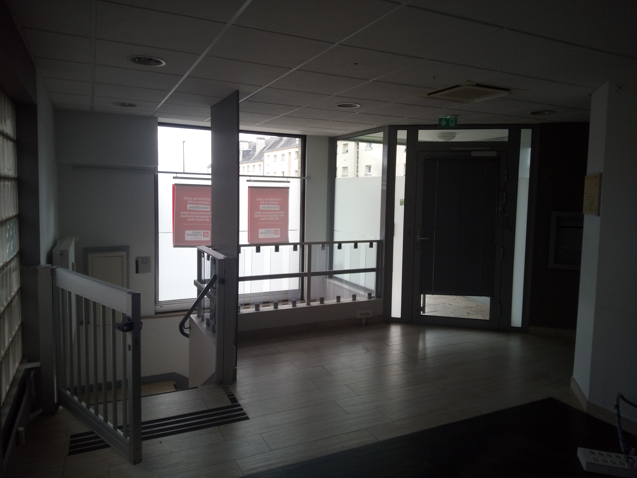 Grande entrée avec dégagement, 2 bureaux, sanitaires, espace sécurisé pour distributeur bancaire.
