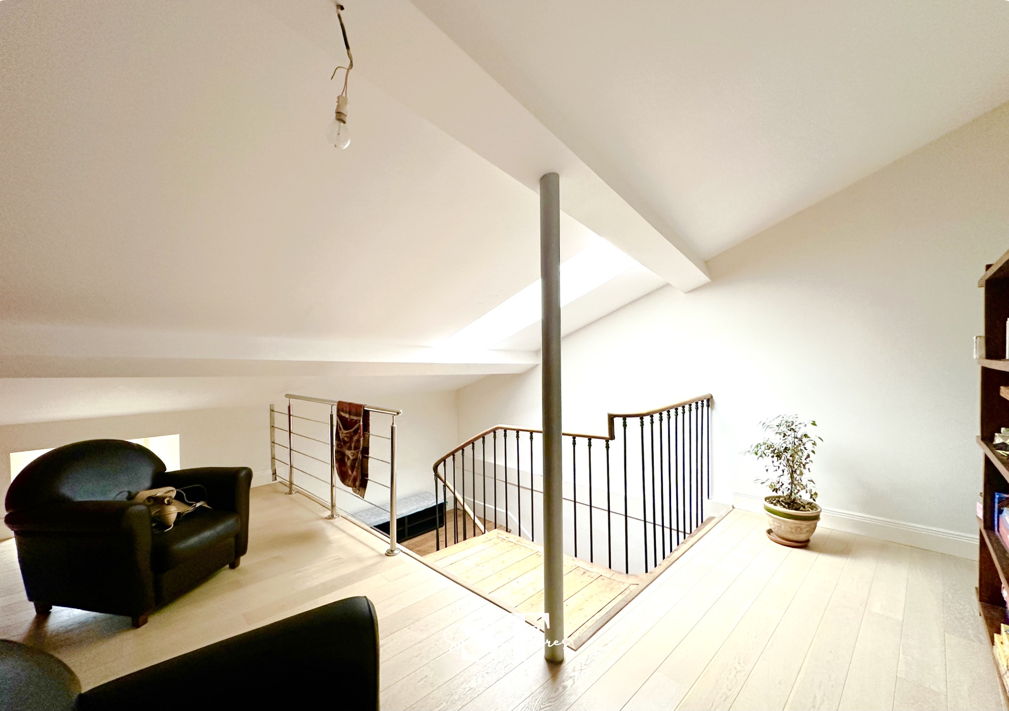 Au deuxième étage: un espace détente sur le palier, une chambre avec rangements et une pièce télé/jeux (ce niveau a été aménagé en 2012) le tout avec plusieurs vélux qui baignent cet étage de lumière.