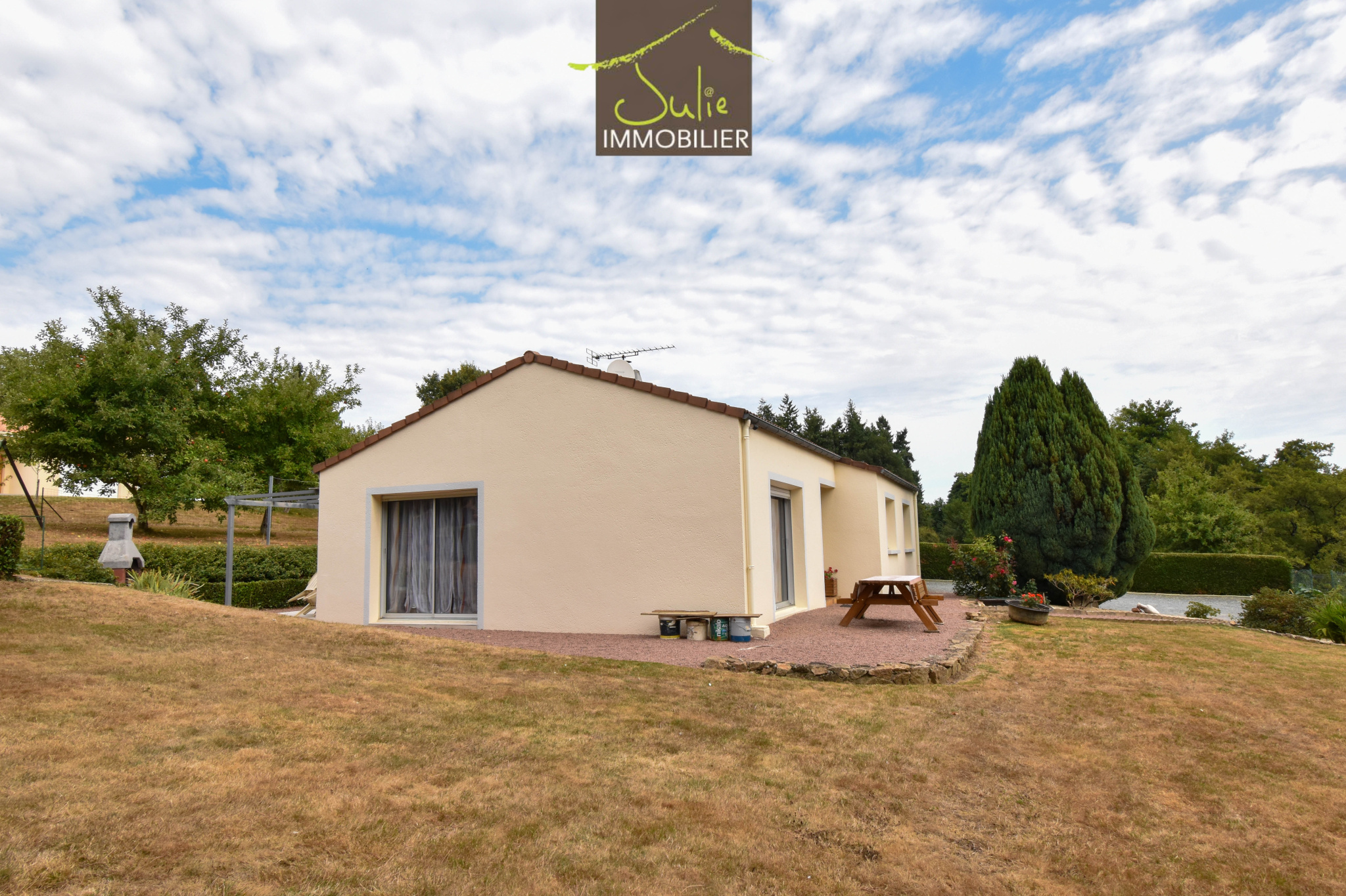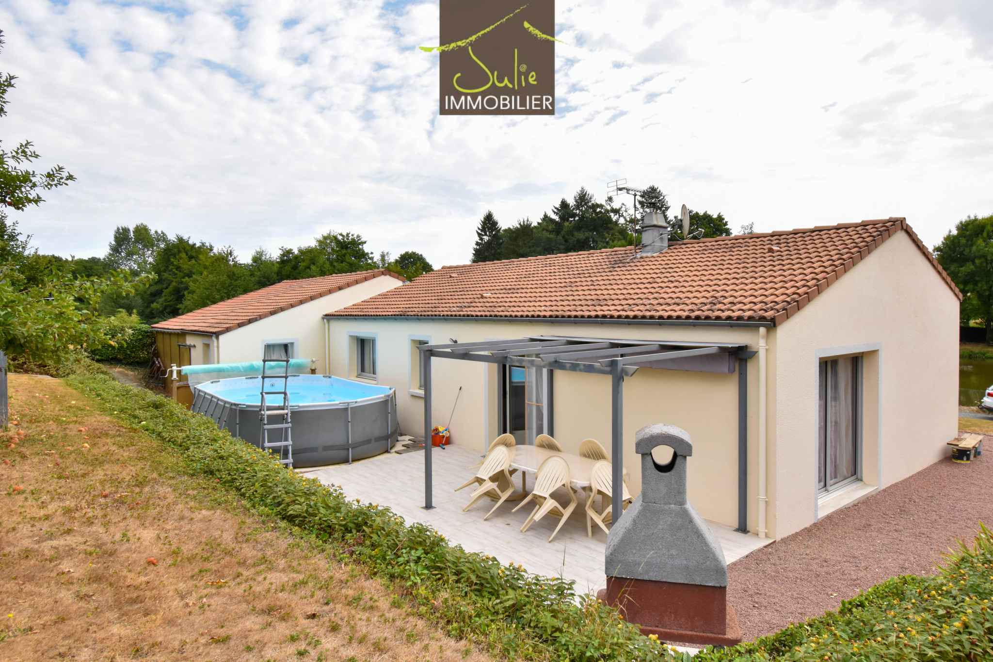 A 5 min. de CERIZAY - Située dans un environnement calme et verdoyant, à seulement 5 minutes en voiture des commerces, cette maison de plain-pied de 93,5 m2 habitables offre confort et fonctionnalité. Elle se compose d'une pièce de vie lumineuse avec poêle à granulés, d'une cuisine aménagée et équipée, de 3 chambres, d'un bureau, d'une salle d'eau avec douche à l'italienne ainsi que de WC indépendants. Côté pratique, vous trouverez également une buanderie, un garage et un carport attenant de 50 m2, offrant de beaux espaces de rangement. À l'extérieur, vous profiterez d'une agréable terrasse donnant sur un jardin arboré de 1465 m2 avec piscine hors-sol pour les beaux jours. En complément, une parcelle de terrain d'environ 1ha avec étang vient parfaire ce cadre bucolique. Un bien idéal pour une famille en quête de tranquillité, tout en restant proche des commodités. Contactez-nous dès aujourd'hui pour organiser une visite !