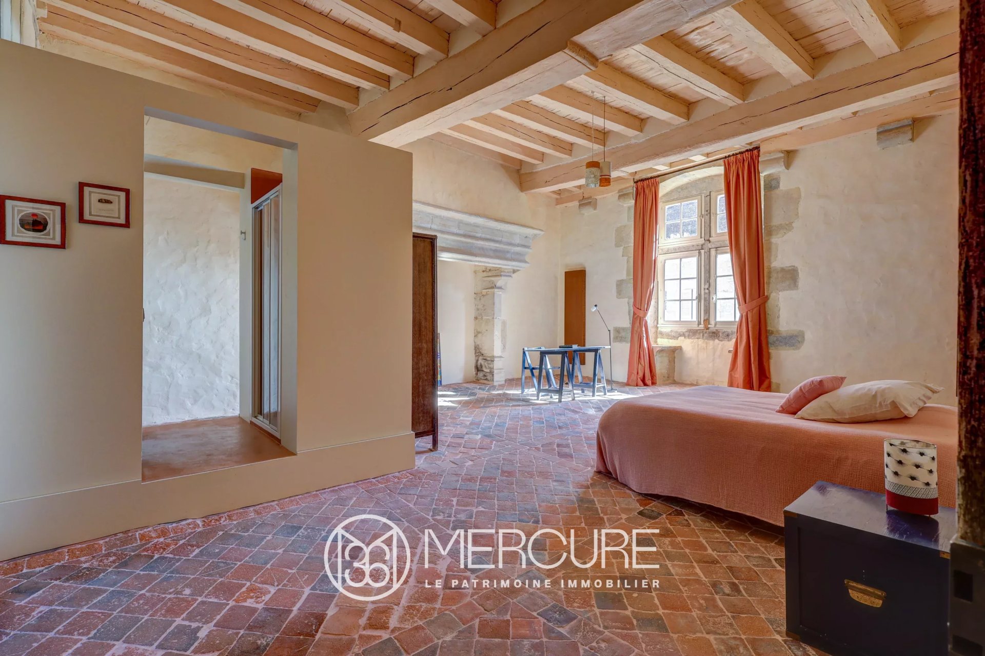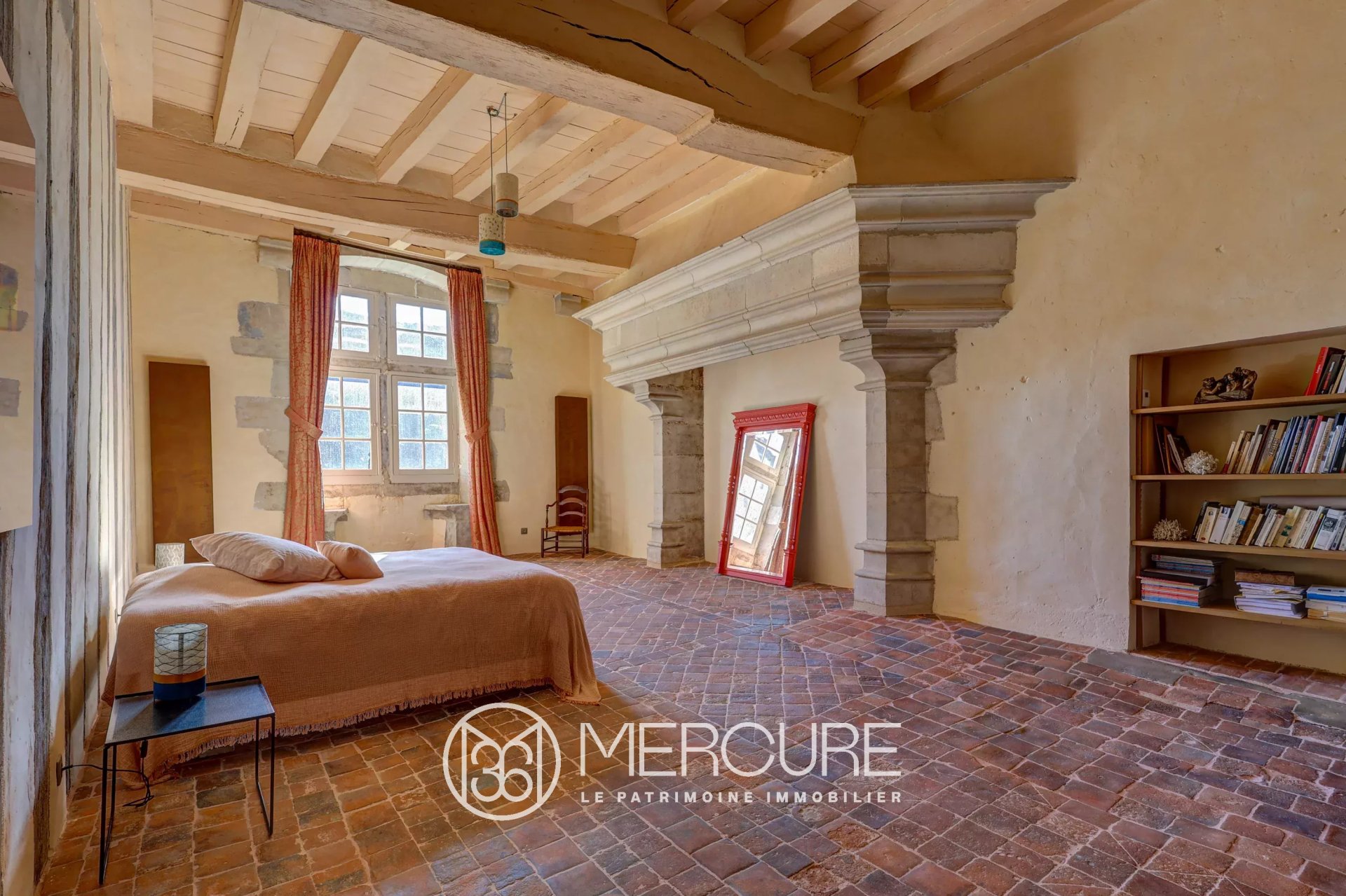 - une maison principale d’habitation sur 2 niveaux, élevée sur caves, en 4 pièces principales dont 3 chambres dotées de majestueuses cheminées d’origine et une superbe pièce de réception. Ses plafonds à la Française, son escalier à vis, ses sols en tomettes, ses murs à colombages, l’authenticité des lieux ne pourront que vous enchanter…