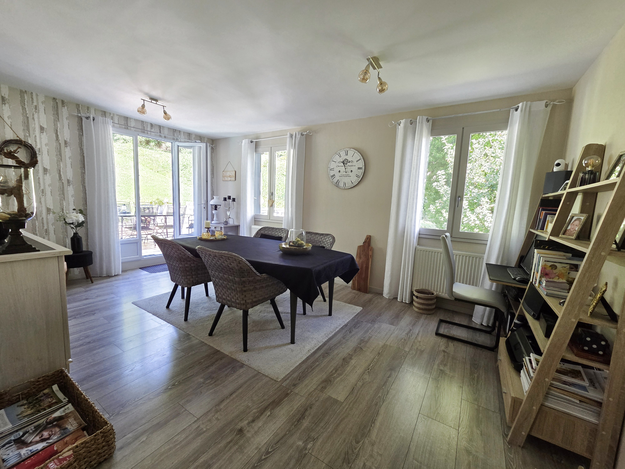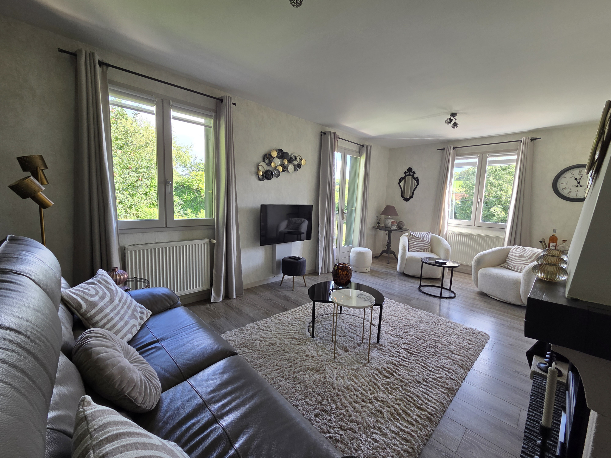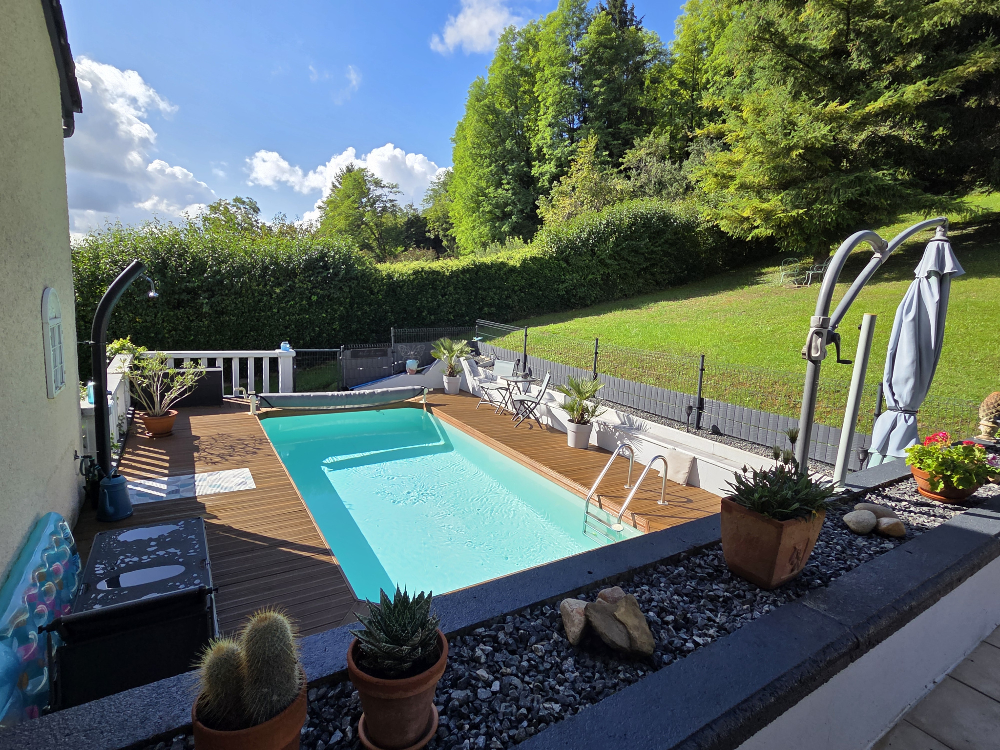 À l'extérieur, vous apprécierez une grande terrasse donnant sur l'espace piscine et offrant une vue dégagée sur le jardin. Un grand garage complète ce bien soigné et fonctionnel.