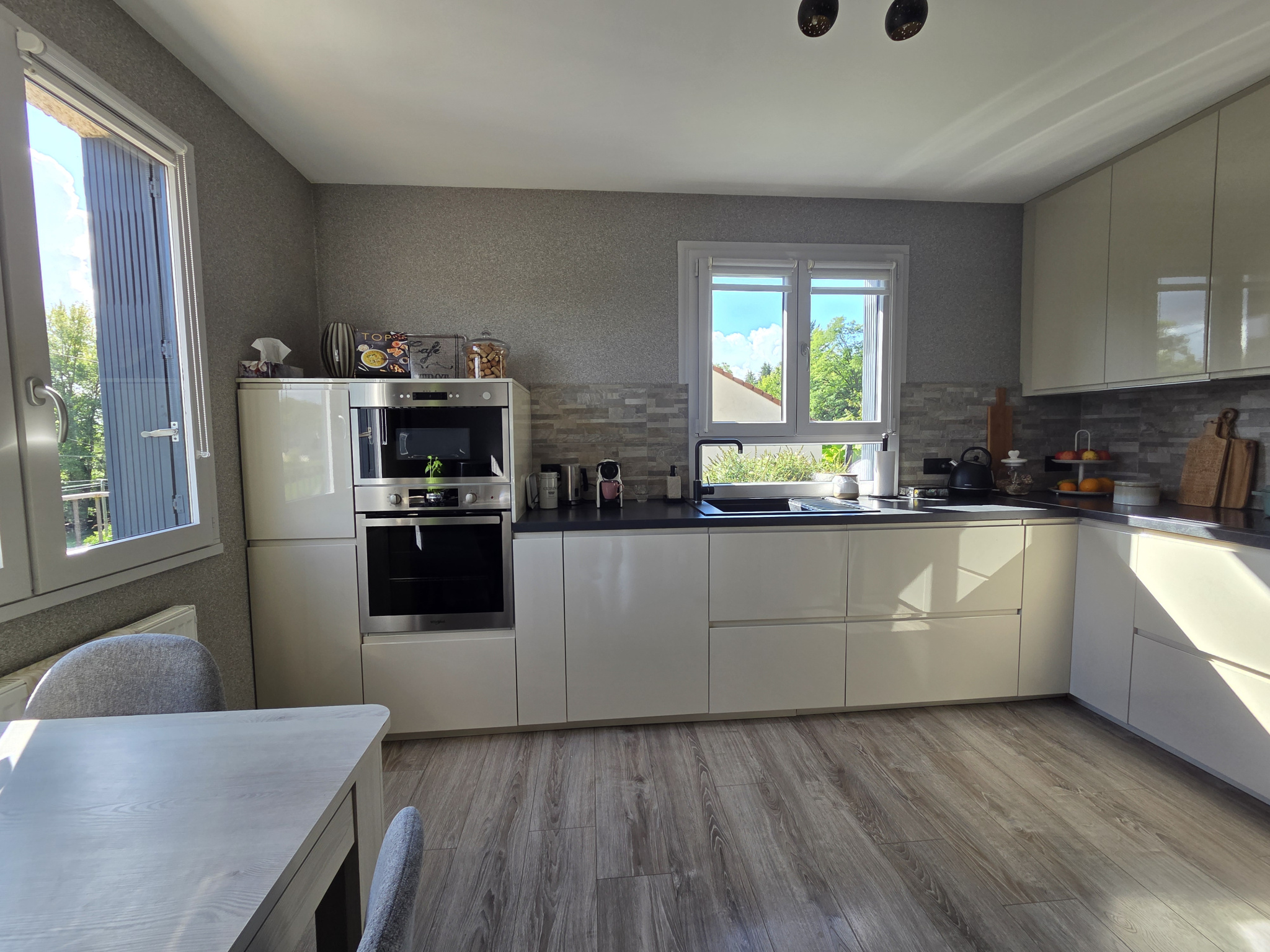 Idéalement située à Creuzier-le-Vieux avec vue, cette charmante maison récemment rénovée offre des prestations de qualité et de beaux volumes, sur un terrain arboré d'environ 1700 m2. Au rez-de-chaussée surélevé : entrée, cuisine moderne entièrement équipée, salon, une salle à manger avec accès sur terrasse et petite piscine 6x3m; dégagement avec WC, suite parentale avec dressing et salle d'eau-WC.
