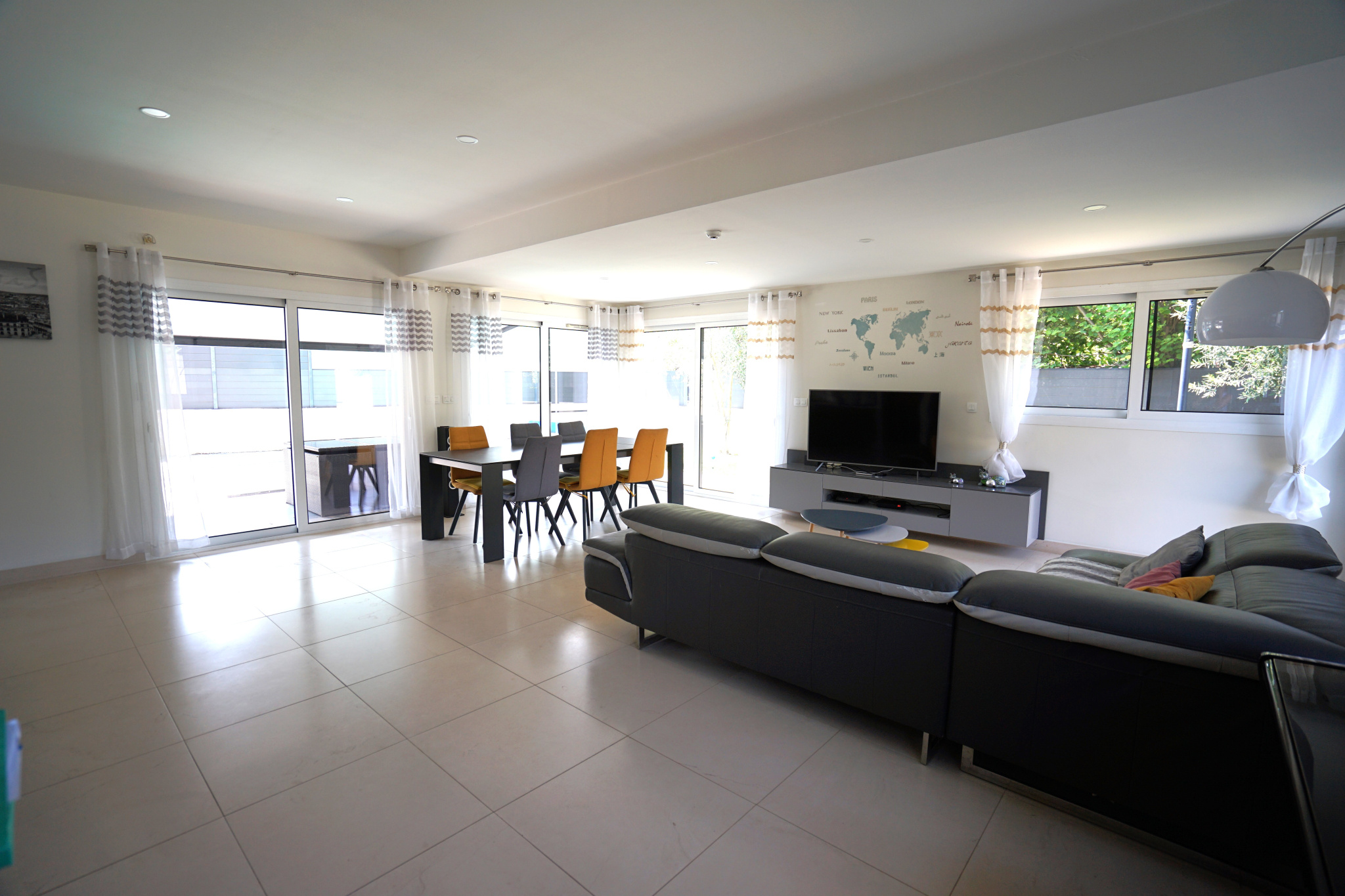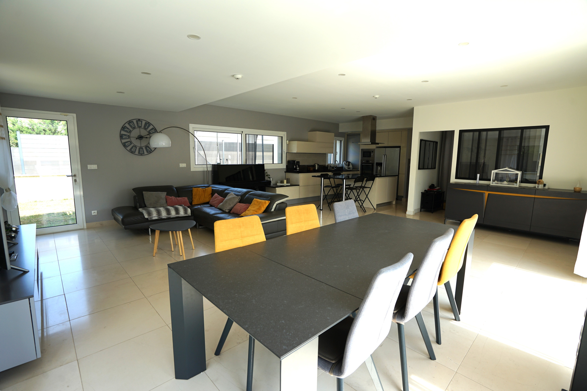 Dés l'entrée, le hall vous accueille et laisse apercevoir une magnifique pièce de vie inondée de lumière à tout heure de la journée.