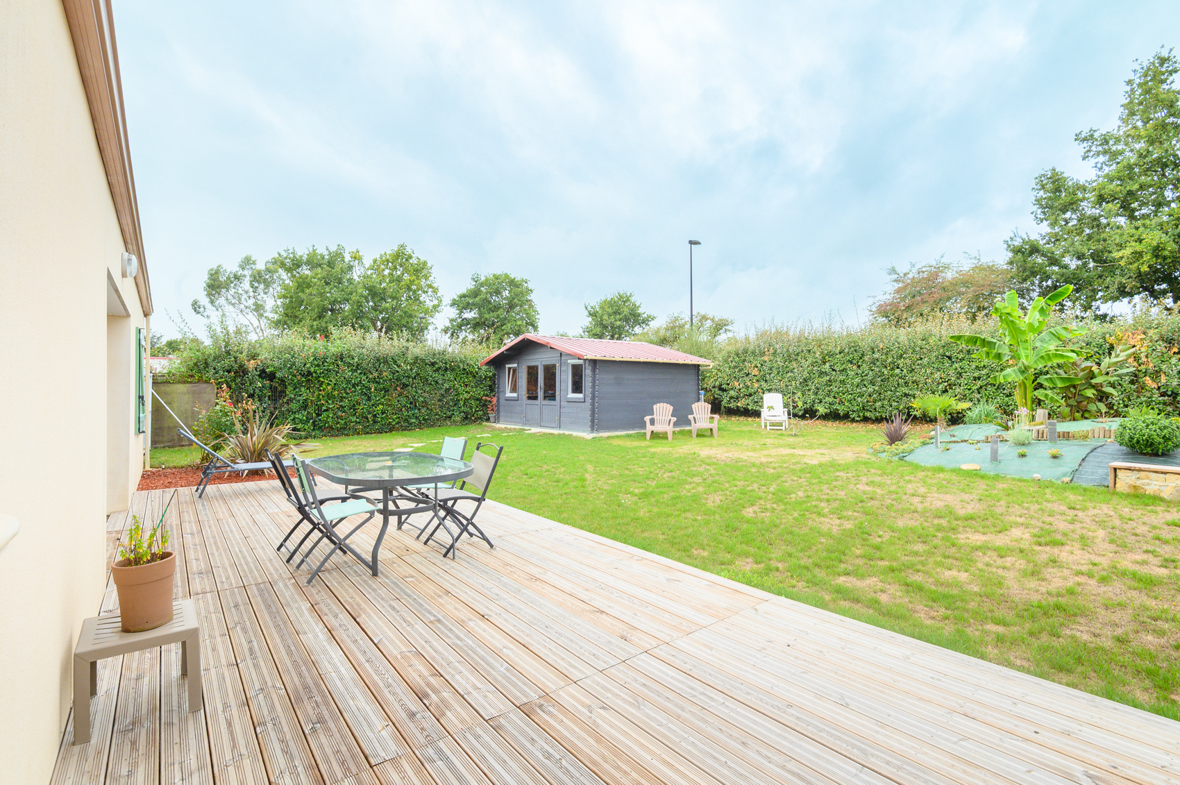 Jardin entièrement clos et sans vis-à-vis de plus de 500m2 avec abri de jardin de 19 m2 et garage de plus de 25 m2.