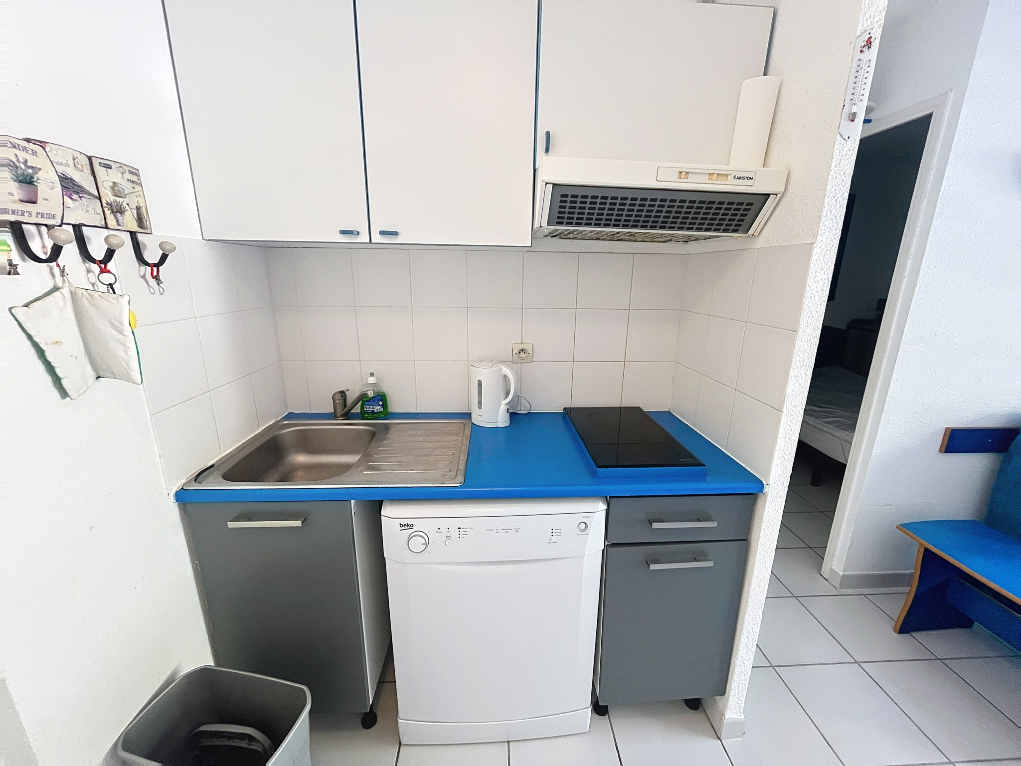 L'appartement de Type 2 est situé au 3ème étage et dernier étage et offre une entrée, un séjour climatisé s'ouvrant sur une terrasse, une kichenette, une salle d'eau rénovée avec douche Italienne et meuble vasque , un WC séparé et une chambre.