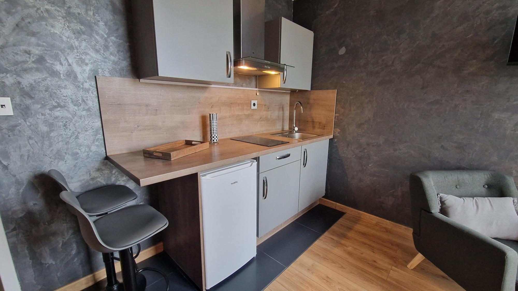 Cet appartement est conçu pour maximiser l'espace et le confort. Le séjour, d'une superficie de 17 m², est baigné de lumière naturelle grâce à ses ouvertures en aluminium. La cuisine, de type américaine, est aménagée et équipée, prête à accueillir vos créations culinaires. La salle d'eau et les WC, séparés, complètent cet espace de vie fonctionnel et élégant.